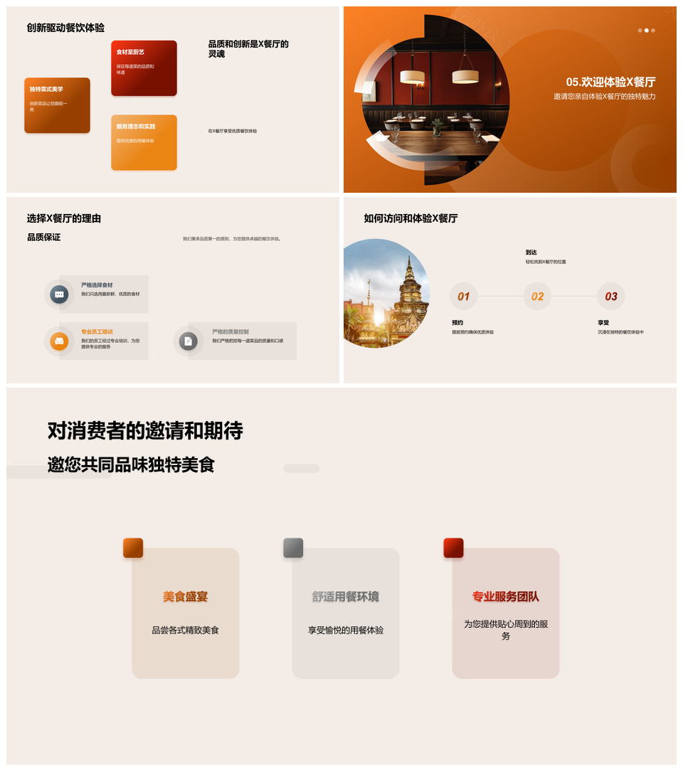 这是一张X餐厅品质创新艺术服务团队风格之路PPT模板,包含餐厅、品质、创新、艺术、服务、团队、风格、之路等主题内容,也可用作餐厅品质创新艺术、品质创新艺术服务、创新艺术服务团队、艺术服务团队风格、服务团队风格之路、餐厅品质创新、品质创新艺术、创新艺术服务、艺术服务团队、服务团队风格、团队风格之路、餐厅品质、品质创新、创新艺术、艺术服务等PPT场景使用。