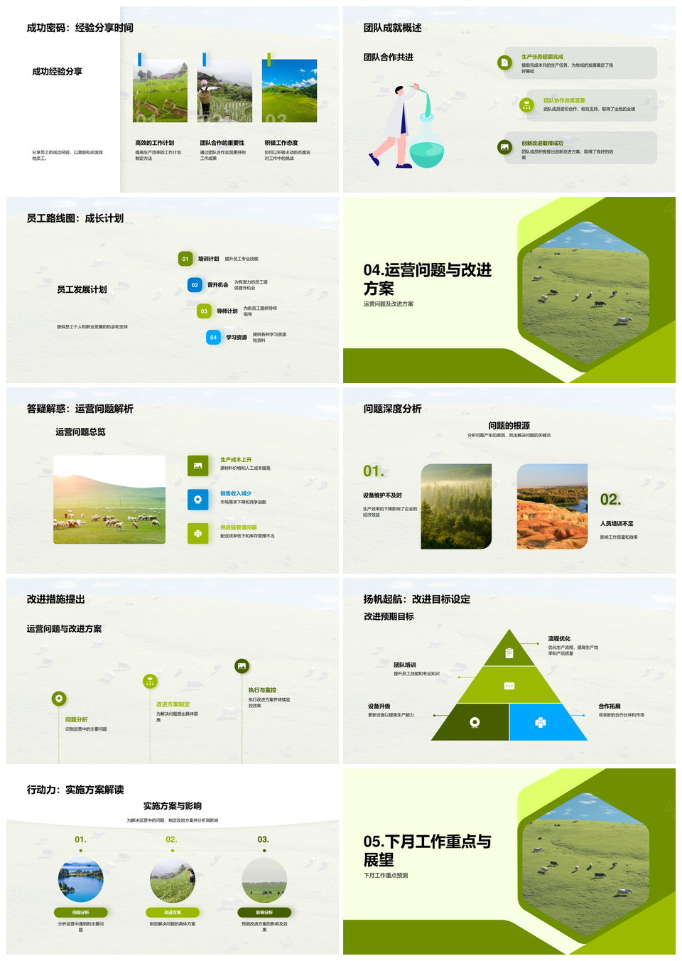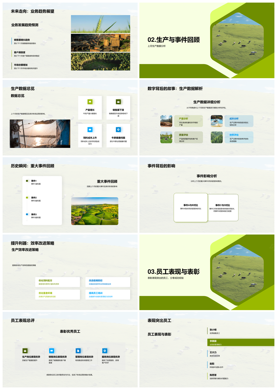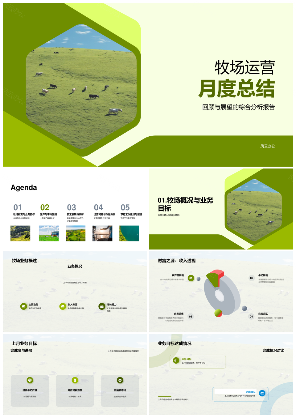 这是一张牧场月度运营总结业务生产数据团队牛群事件问题PPT模板,包含牧场、月度、运营、总结、业务、生产、数据、团队、牛群、事件、问题等主题内容,也可用作牧场月度运营总结、业务生产数据团队、生产数据团队牛群、牛群事件问题、牧场月度业务生产、运营总结业务生产、月度运营总结业务、总结业务生产数据、业务生产数据团队、生产数据团队牛群、数据团队牛群事件、牧场月度运营、运营总结业务、业务生产数据、数据团队牛群等PPT场景使用。 风云办公提供的牧场月度运营总结业务生产数据团队牛群事件问题PPT模板,下载格式为pptx,一共33页,作品中文字及图均可以修改和编辑,图片更改请在作品中右键图片并更换,文字修改请直接点击文字进行修改。