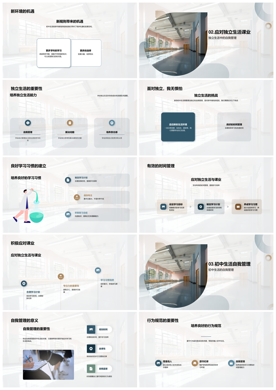 这是一张初中新生适应管理与优秀习惯养成指南PPT模板,包含初中新生、适应、管理、优秀习惯、养成、指南等主题内容,也可用作初中新生适应管理、新生适应管理优秀、适应管理优秀习惯、管理优秀习惯养成、优秀习惯养成指南、初中新生习惯养成、新生优秀习惯养成、初中优秀习惯养成、初中新生管理、新生适应管理、适应管理优秀、优秀习惯养成、习惯养成指南、适应管理、优秀习惯等PPT场景使用。