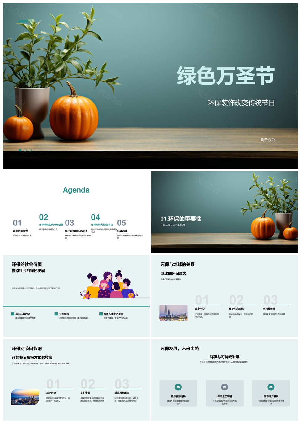 风云办公提供的绿色万圣节环保装饰新风尚可持续发展PPT模板,下载格式为pptx,一共28页,作品中文字及图均可以修改和编辑,图片更改请在作品中右键图片并更换,文字修改请直接点击文字进行修改。