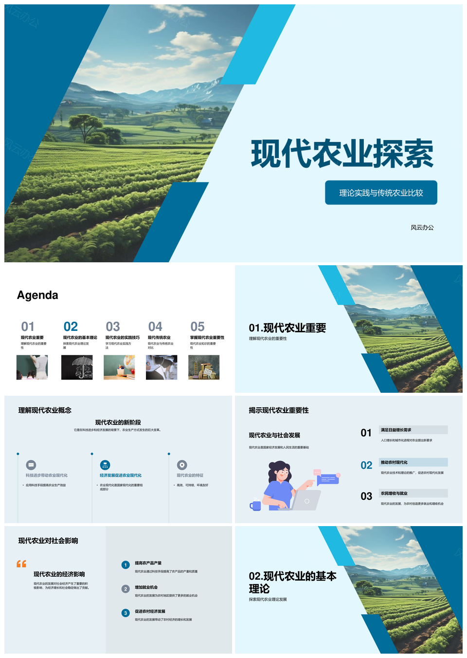 这是一张现代农业与传统农业理论实践科技种植管理防控工具PPT模板,包含现代农业、传统农业、理论、实践、科技、种植、管理、防控、工具等主题内容,也可用作现代农业科技种植管理防控、现代农业科技种植管理、传统农业理论实践科技、科技种植管理防控工具、现代农业理论实践科技、实践科技管理防控工具、现代农业传统农业科技、理论实践科技种植、科技种植管理防控、管理防控工具实践、传统农业科技种植、理论实践科技、现代农业管理、防控工具科技、种植管理实践等PPT场景使用。 风云办公提供的现代农业与传统农业理论实践科技种植管理防控工具PPT模板,下载格式为pptx,一共23页,作品中文字及图均可以修改和编辑,图片更改请在作品中右键图片并更换,文字修改请直接点击文字进行修改。
