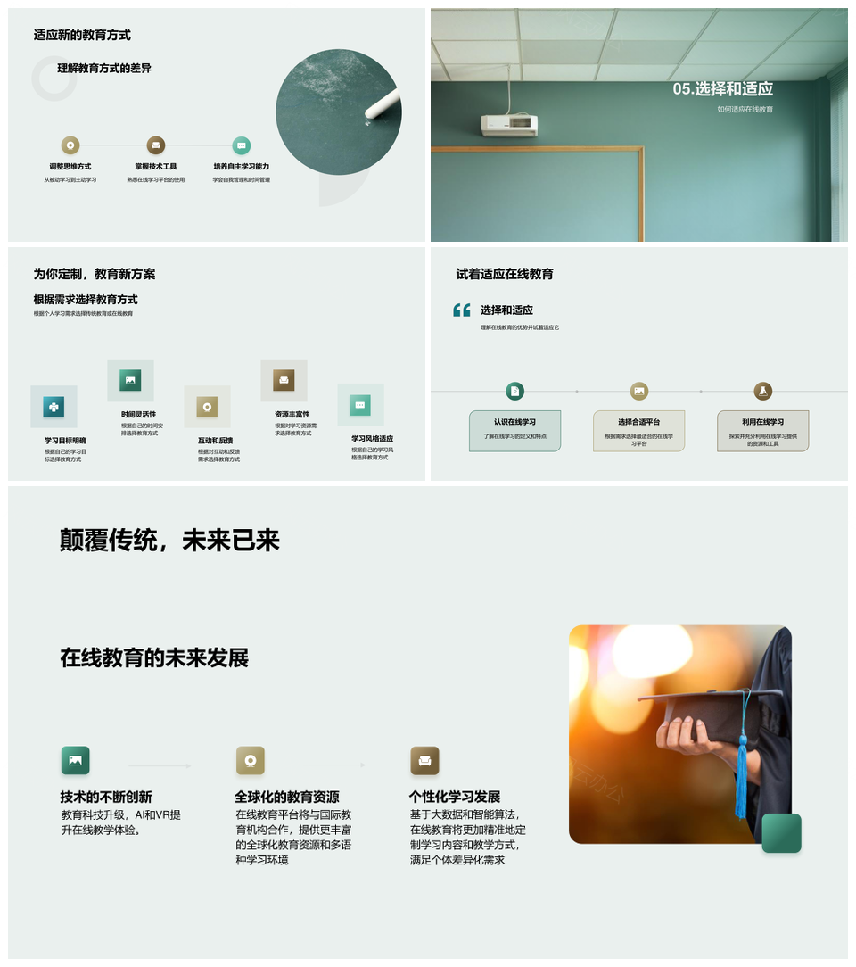 这是一张传统在线教育对比探索新形态灵活便利学习PPT模板,包含传统、在线教育、对比、探索、新形态、灵活、便利、学习等主题内容,也可用作传统在线教育对比探索新形态、在线教育对比探索新形态、传统在线教育对比探索、探索新形态灵活便利学习、传统在线教育新形态、在线教育探索新形态、新形态灵活便利学习、传统对比探索新形态、在线教育对比新形态、灵活便利学习新形态、在线教育新形态灵活、传统在线教育对比、探索灵活便利学习、新形态灵活便利、在线教育灵活便利等PPT场景使用。 风云办公提供的传统在线教育对比探索新形态灵活便利学习PPT模板,下载格式为pptx,一共23页,作品中文字及图均可以修改和编辑,图片更改请在作品中右键图片并更换,文字修改请直接点击文字进行修改。