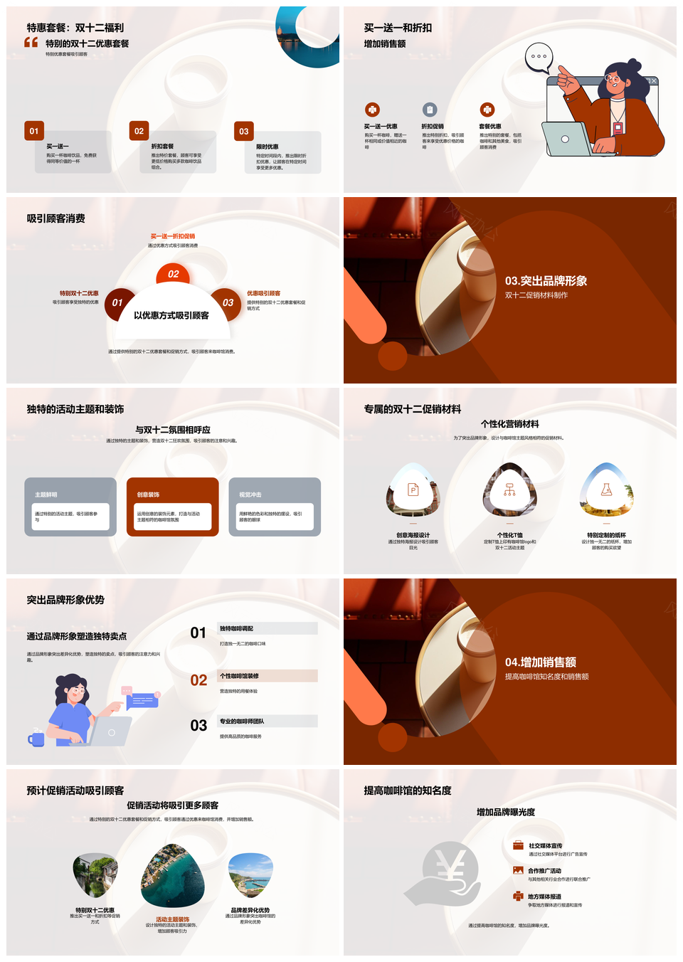 双十二咖啡馆特惠买一送一赠咖啡杯冲销量PPT模板推荐