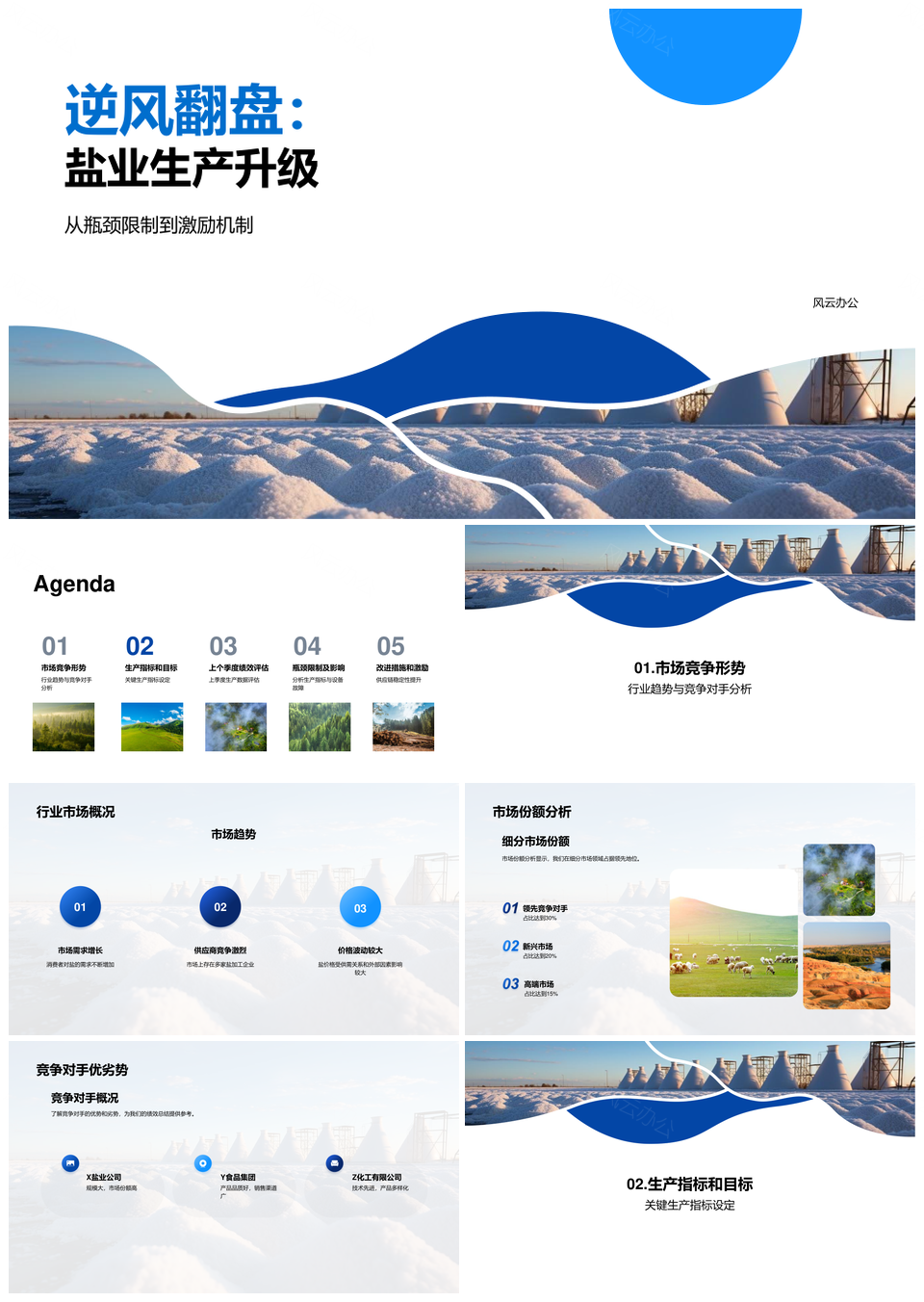 这是一张盐加工部门绩效总结与生产升级目标分析PPT模板,包含盐加工部门、绩效总结、生产升级、目标分析等主题内容,也可用作盐加工部门绩效总结、部门绩效总结生产升级、绩效总结生产升级目标、生产升级目标分析、盐加工部门绩效、部门绩效总结、绩效总结生产升级、总结生产升级目标、生产升级目标分析、盐加工部门、部门绩效、绩效总结、总结生产升级、生产升级目标、目标分析等PPT场景使用。 风云办公提供的盐加工部门绩效总结与生产升级目标分析PPT模板,下载格式为pptx,一共23页,作品中文字及图均可以修改和编辑,图片更改请在作品中右键图片并更换,文字修改请直接点击文字进行修改。