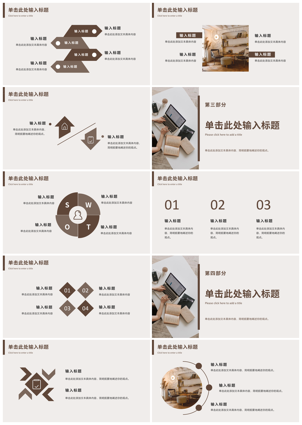本套模板以素净低饱和配色为主调,融合咖啡棕与浅卡其的自然质感,辅以驼色、沙色作视觉过渡。专业级排版逻辑清晰呈现内容层次,无冗余装饰干扰信息传达。仿皮质纹理背景与哑光色块搭配,模拟纸质材料的温润触感,适配学术研讨、商业提案等需体现专业价值的场景。图标设计采用极简线性风格,与主色系的土黄色相呼应,平衡视觉严肃性与设计巧思。所有元素经过严谨的网格校对,确保文本、数据图表在不同终端呈现一致的阅读体验,是职场精英提升内容专业度的效率工具。