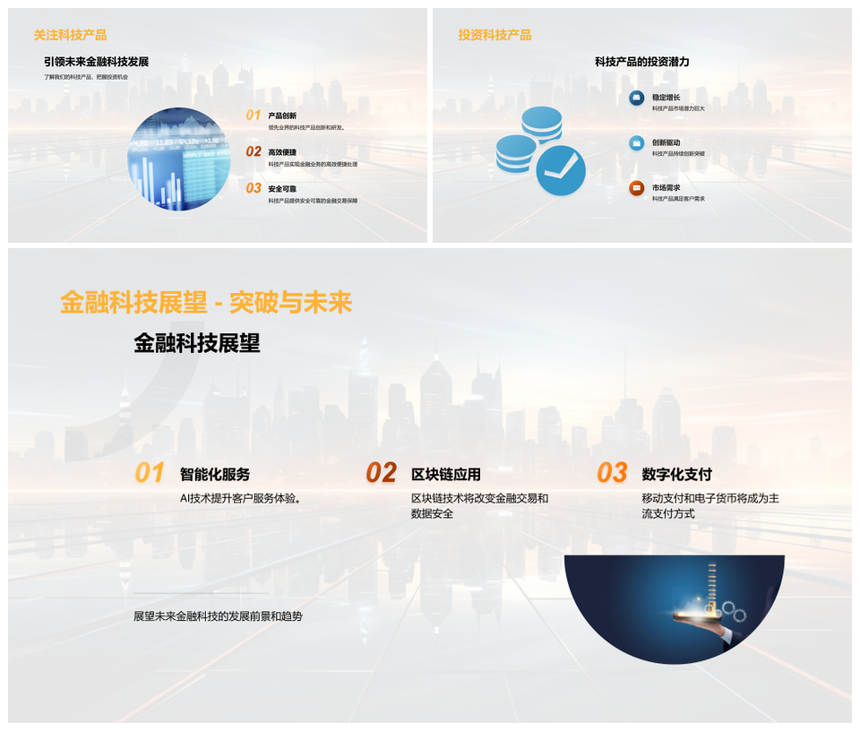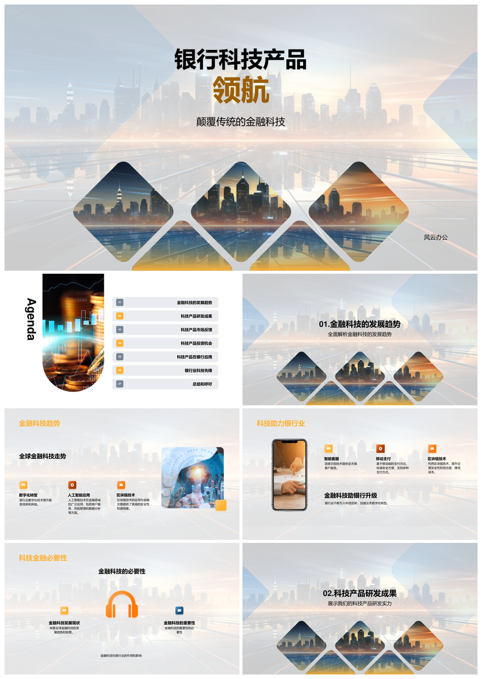 风云办公提供的银行科技领航金融创新未来PPT模板,下载格式为pptx,一共31页,作品中文字及图均可以修改和编辑,图片更改请在作品中右键图片并更换,文字修改请直接点击文字进行修改。