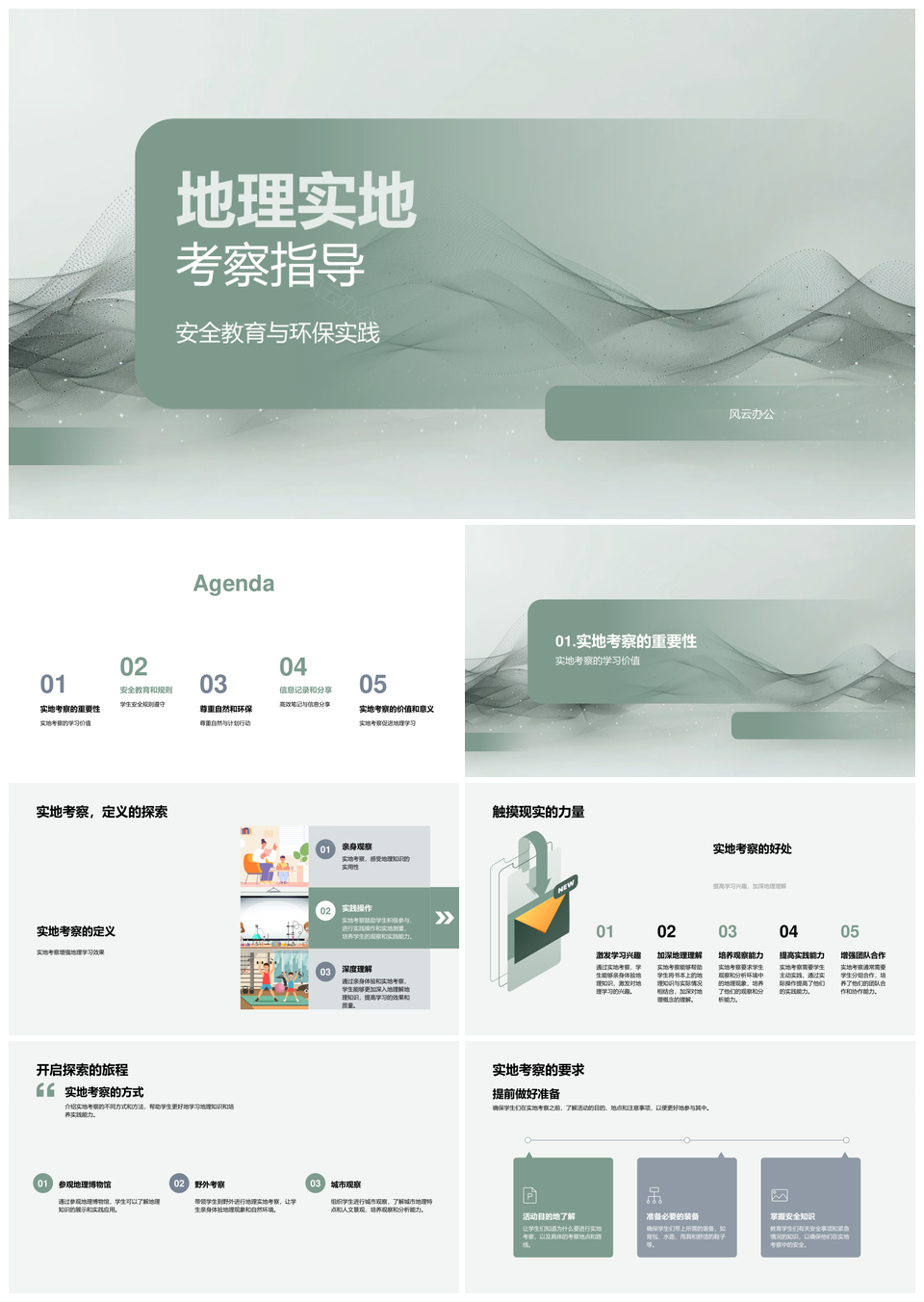 风云办公提供的地理实地考察安全环保实践指导PPT模板,下载格式为pptx,一共33页,作品中文字及图均可以修改和编辑,图片更改请在作品中右键图片并更换,文字修改请直接点击文字进行修改。