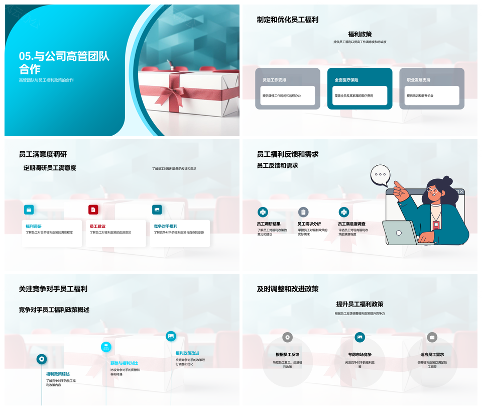 这是一张员工福利调研反馈优化提升绩效生产力PPT模板,包含员工福利、调研、反馈、优化、提升、绩效、生产力等主题内容,也可用作员工福利调研反馈、调研反馈优化提升、员工福利优化提升、优化提升绩效生产力、反馈优化提升绩效、员工福利调研、福利调研反馈、调研反馈优化、反馈优化提升、优化提升绩效、提升绩效生产力、员工福利、调研反馈、优化提升、绩效生产力等PPT场景使用。