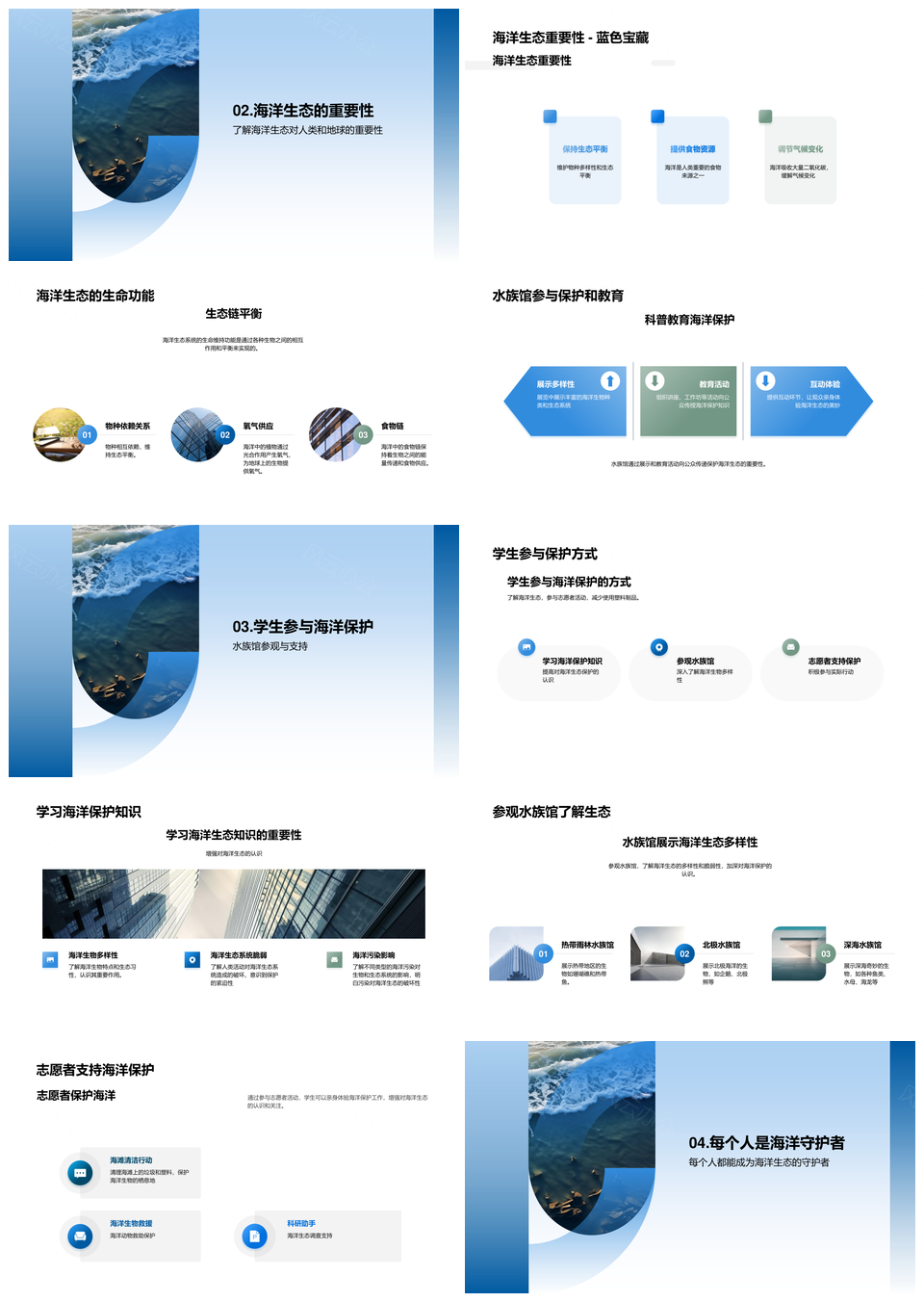 风云办公提供的水族馆馆长呼吁全球共建蓝色海洋生态PPT模板,下载格式为pptx,一共26页,作品中文字及图均可以修改和编辑,图片更改请在作品中右键图片并更换,文字修改请直接点击文字进行修改。