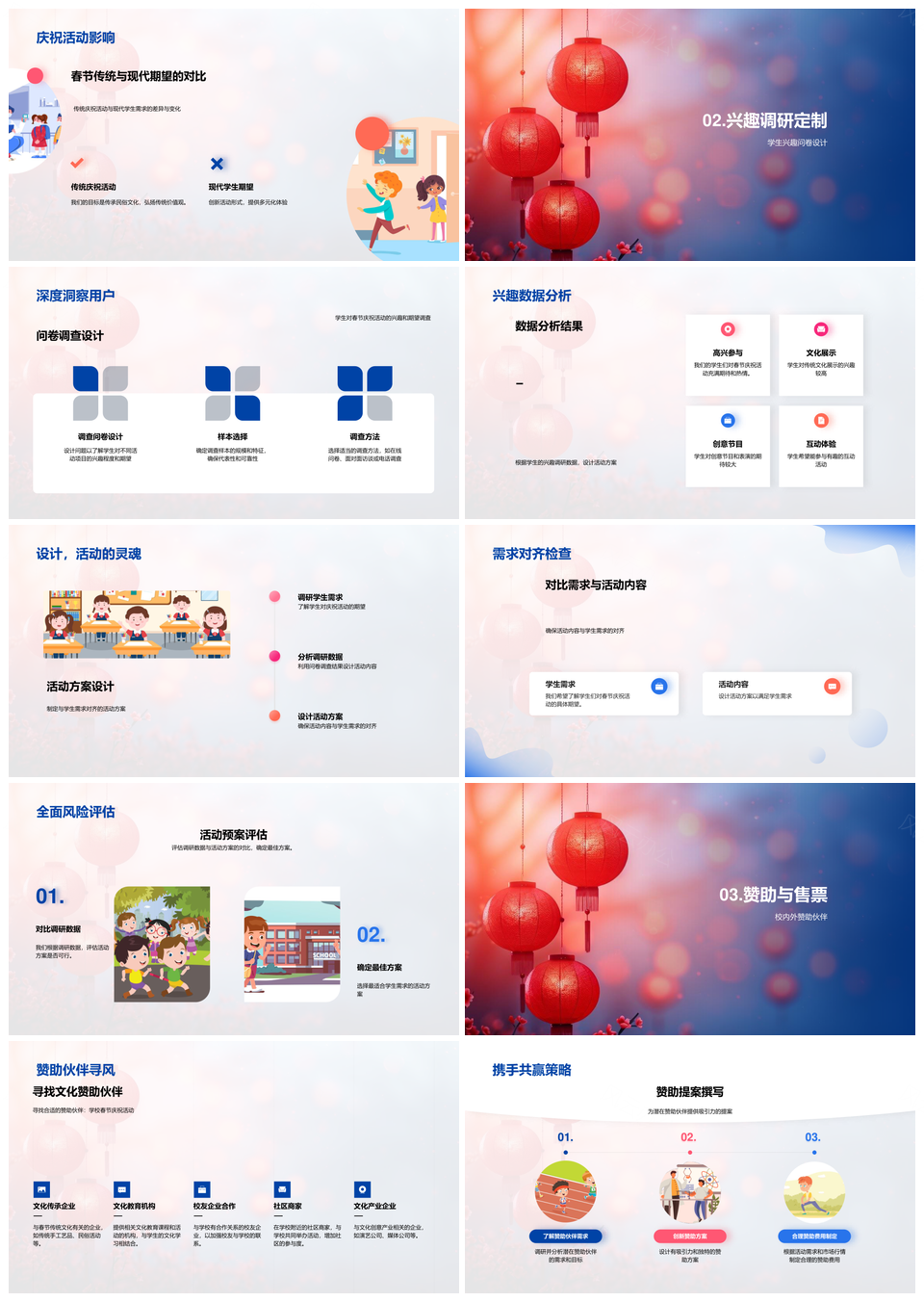 校园春节特色活动策划需求问卷赞助方案PPT模板推荐