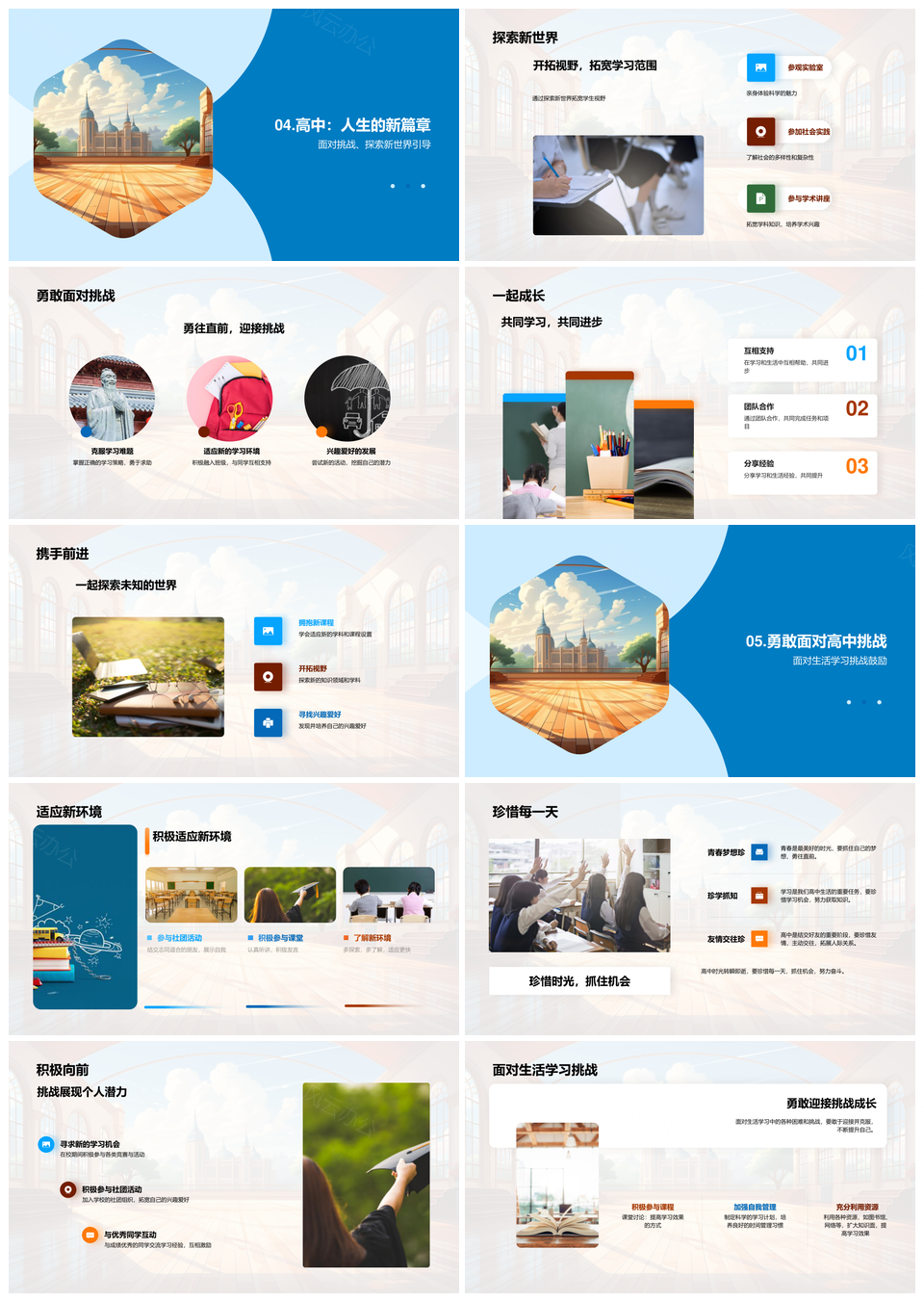 风云办公提供的高中生探索新环境课程主动成长PPT模板,下载格式为pptx,一共28页,作品中文字及图均可以修改和编辑,图片更改请在作品中右键图片并更换,文字修改请直接点击文字进行修改。