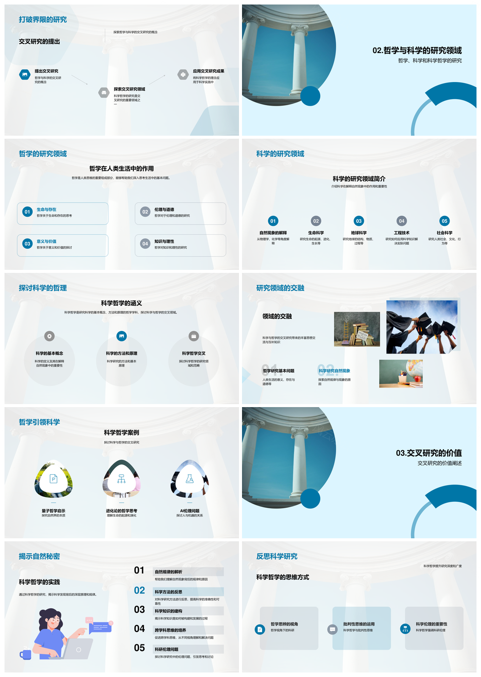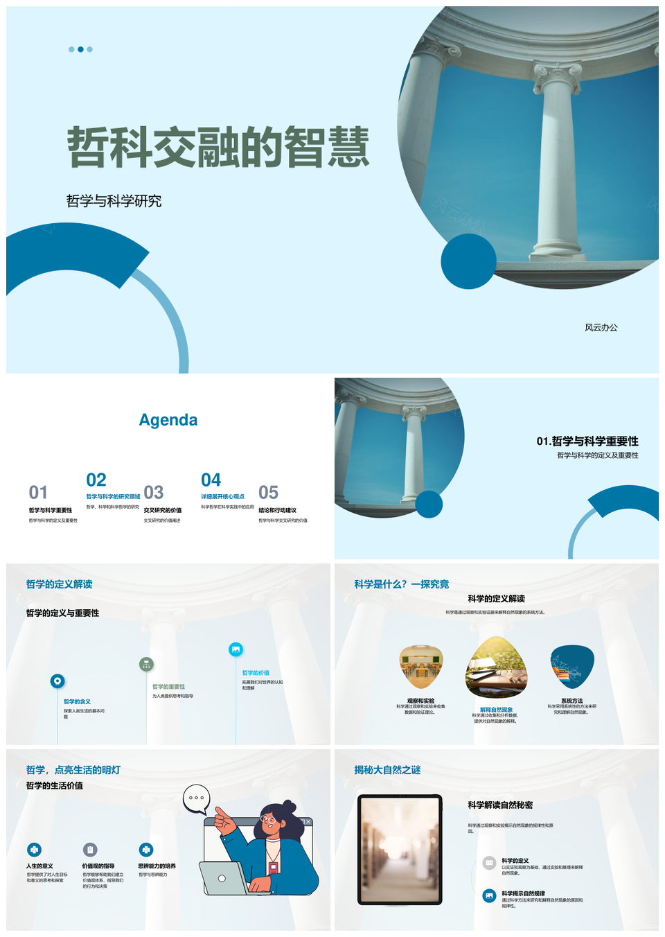 风云办公提供的哲科交叉探索自然实践与教育PPT模板,下载格式为pptx,一共33页,作品中文字及图均可以修改和编辑,图片更改请在作品中右键图片并更换,文字修改请直接点击文字进行修改。