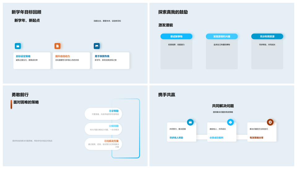 这是一张新学年探索兴趣能力挑战筑梦启航PPT模板,包含新学年、探索、兴趣、能力、挑战、筑梦、启航等主题内容,也可用作新学年探索兴趣能力挑战、探索兴趣能力挑战筑梦、兴趣能力挑战筑梦启航、新学年探索兴趣能力、探索兴趣能力挑战、兴趣能力挑战筑梦、能力挑战筑梦启航、新学年探索兴趣、探索兴趣能力、兴趣能力挑战、能力挑战筑梦、挑战筑梦启航、新学年探索、探索兴趣、兴趣能力、能力挑战、挑战筑梦、筑梦启航等PPT场景使用。