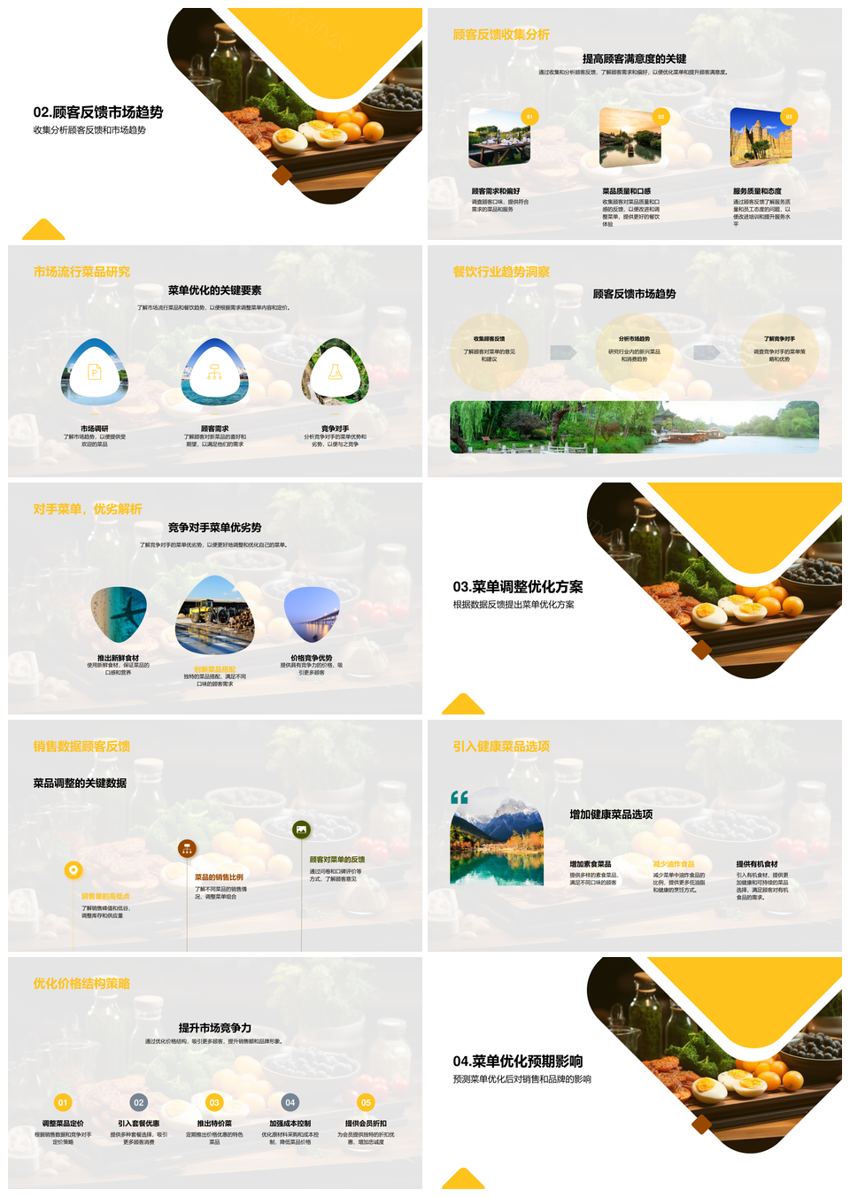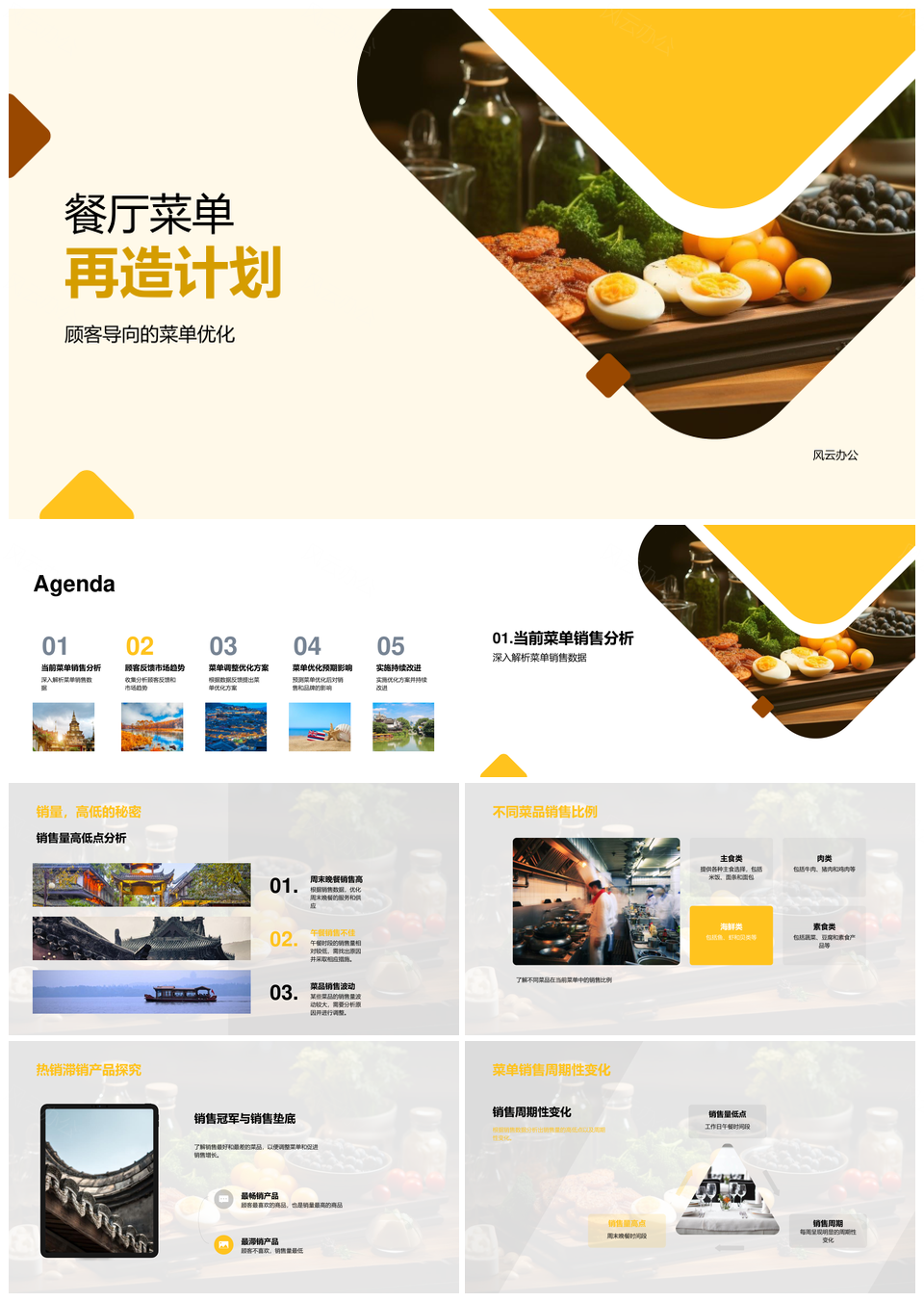 风云办公提供的顾客导向健康趋势餐厅菜单优化再造PPT模板,下载格式为pptx,一共26页,作品中文字及图均可以修改和编辑,图片更改请在作品中右键图片并更换,文字修改请直接点击文字进行修改。