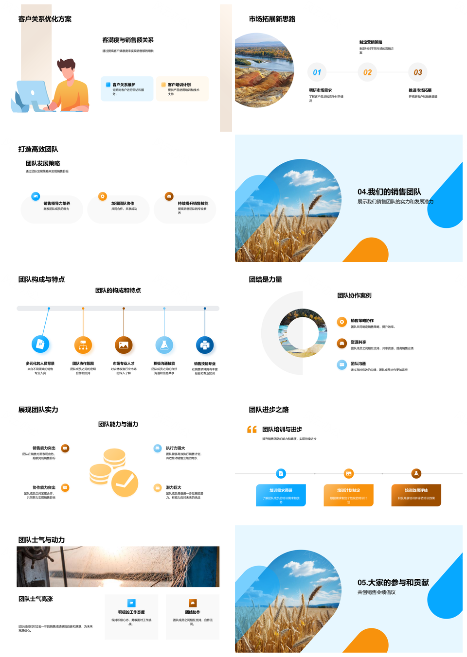 这是一张麦田团队新策略助力农产品销售目标达成PPT模板,包含麦田团队、新策略、助力、农产品、销售目标、达成等主题内容,也可用作麦田团队新策略助力、团队新策略助力农产品、新策略助力农产品销售、助力农产品销售目标、农产品销售目标达成、麦田团队新策略、团队新策略助力、新策略助力农产品、助力农产品销售、农产品销售目标、销售目标达成、麦田团队、团队新策略、新策略助力、农产品销售等PPT场景使用。 风云办公提供的麦田团队新策略助力农产品销售目标达成PPT模板,下载格式为pptx,一共33页,作品中文字及图均可以修改和编辑,图片更改请在作品中右键图片并更换,文字修改请直接点击文字进行修改。