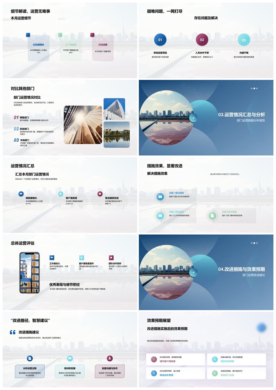 这是一张摩天大楼部门运营审视总结问题改进建议PPT模板,包含摩天大楼、部门、运营、审视、总结、问题、改进、建议等主题内容,也可用作摩天大楼部门运营审视总结、部门运营审视总结问题、运营审视总结问题改进、审视总结问题改进建议、部门运营审视总结、运营审视总结问题、审视总结问题改进、总结问题改进建议、部门运营审视、运营审视总结、审视总结问题、总结问题改进、运营审视总结问题改进、部门运营总结问题改进、摩天大楼部门运营审视等PPT场景使用。 风云办公提供的摩天大楼部门运营审视总结问题改进建议PPT模板,下载格式为pptx,一共23页,作品中文字及图均可以修改和编辑,图片更改请在作品中右键图片并更换,文字修改请直接点击文字进行修改。