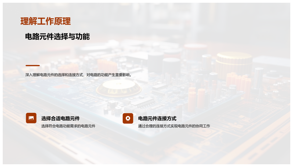这是一张电路设计实践电流电压元件电路板应用PPT模板,包含电路设计、实践、电流、电压、元件、电路板、应用等主题内容,也可用作电流电压元件电路板、设计实践电流电压、电路设计电流电压、电路设计实践、电流电压元件、电压元件电路板、元件电路板应用、设计实践电流、实践电流电压、电路板应用电流、电路设计、电流电压、设计实践、元件电路板、电路板应用等PPT场景使用。