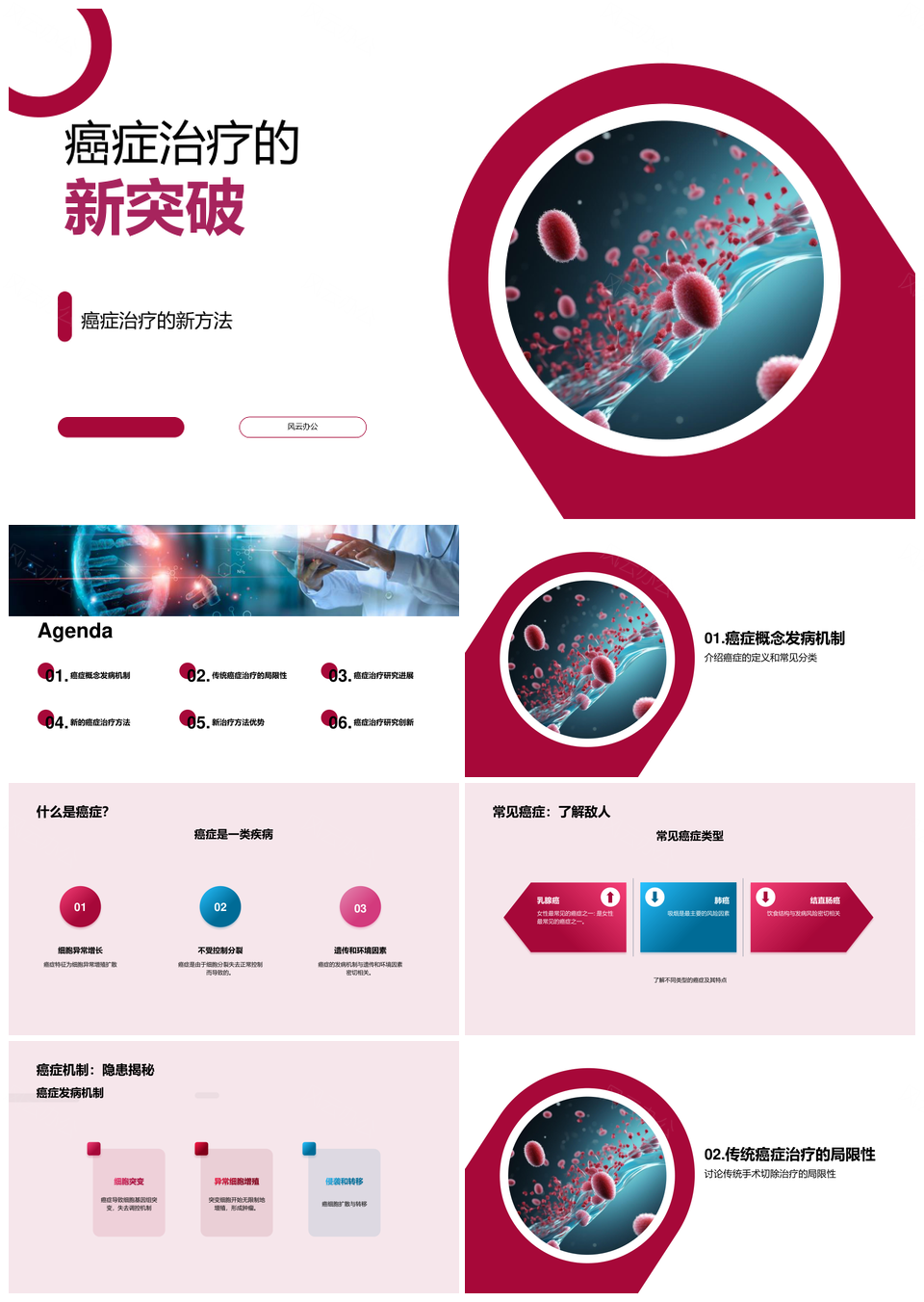 风云办公提供的癌症治疗新突破解析发病原因细胞扩散PPT模板,下载格式为pptx,一共27页,作品中文字及图均可以修改和编辑,图片更改请在作品中右键图片并更换,文字修改请直接点击文字进行修改。