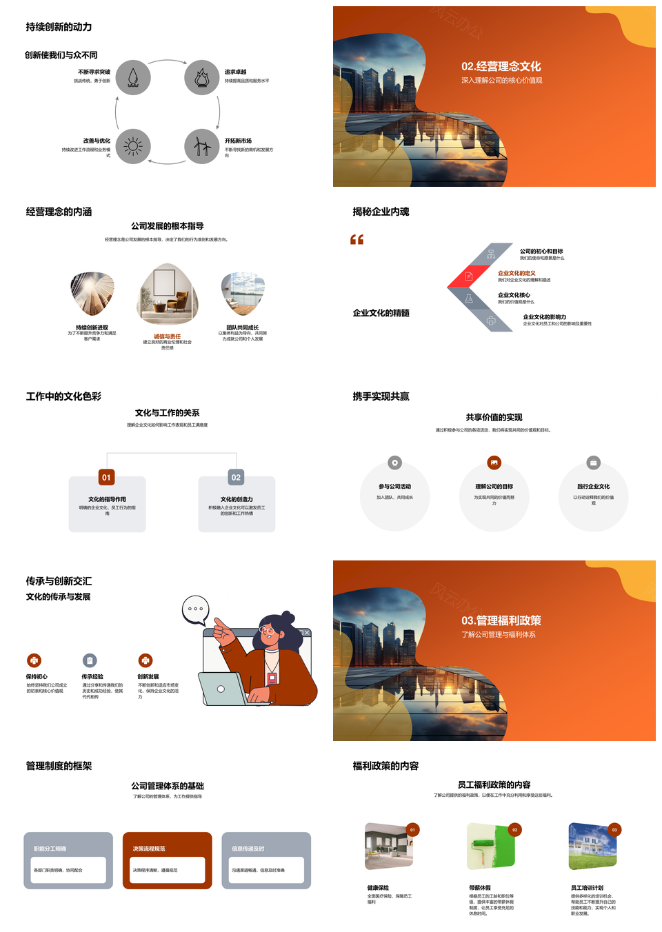 这是一张房地产新员工企业文化培训解析发展管理福利PPT模板,包含房地产、新员工、企业文化、培训、解析、发展、管理、福利等主题内容,也可用作房地产新员工企业文化培训、新员工企业文化培训解析、企业文化培训解析发展、培训解析发展管理、解析发展管理福利、房地产新员工培训、新员工培训解析、培训解析发展、解析发展管理、发展管理福利、房地产企业文化管理、新员工发展福利、房地产新员工、培训解析、发展管理等PPT场景使用。 风云办公提供的房地产新员工企业文化培训解析发展管理福利PPT模板,下载格式为pptx,一共33页,作品中文字及图均可以修改和编辑,图片更改请在作品中右键图片并更换,文字修改请直接点击文字进行修改。