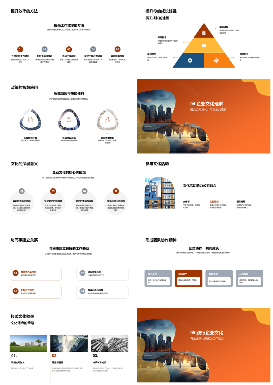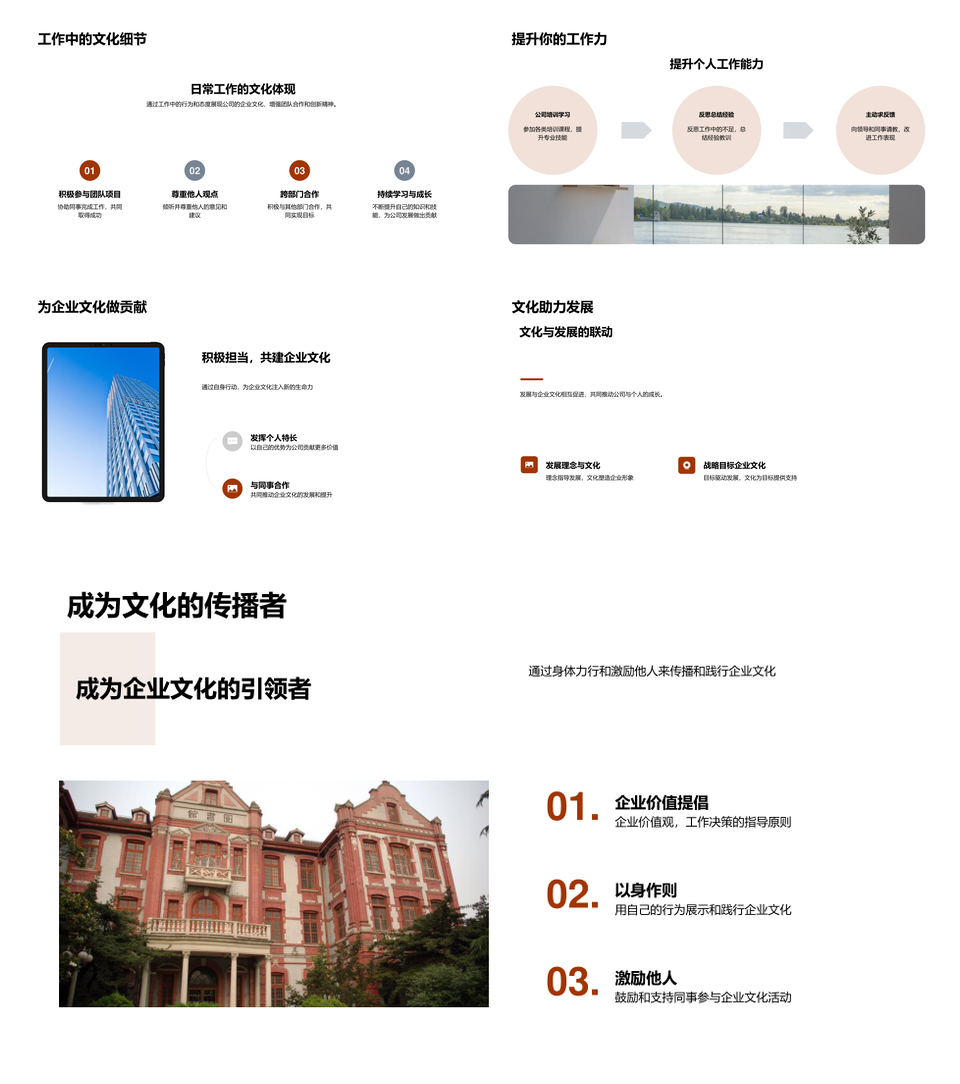 企业文化发展中的价值观实践与新员工培训历史成就企业大楼PPT模板