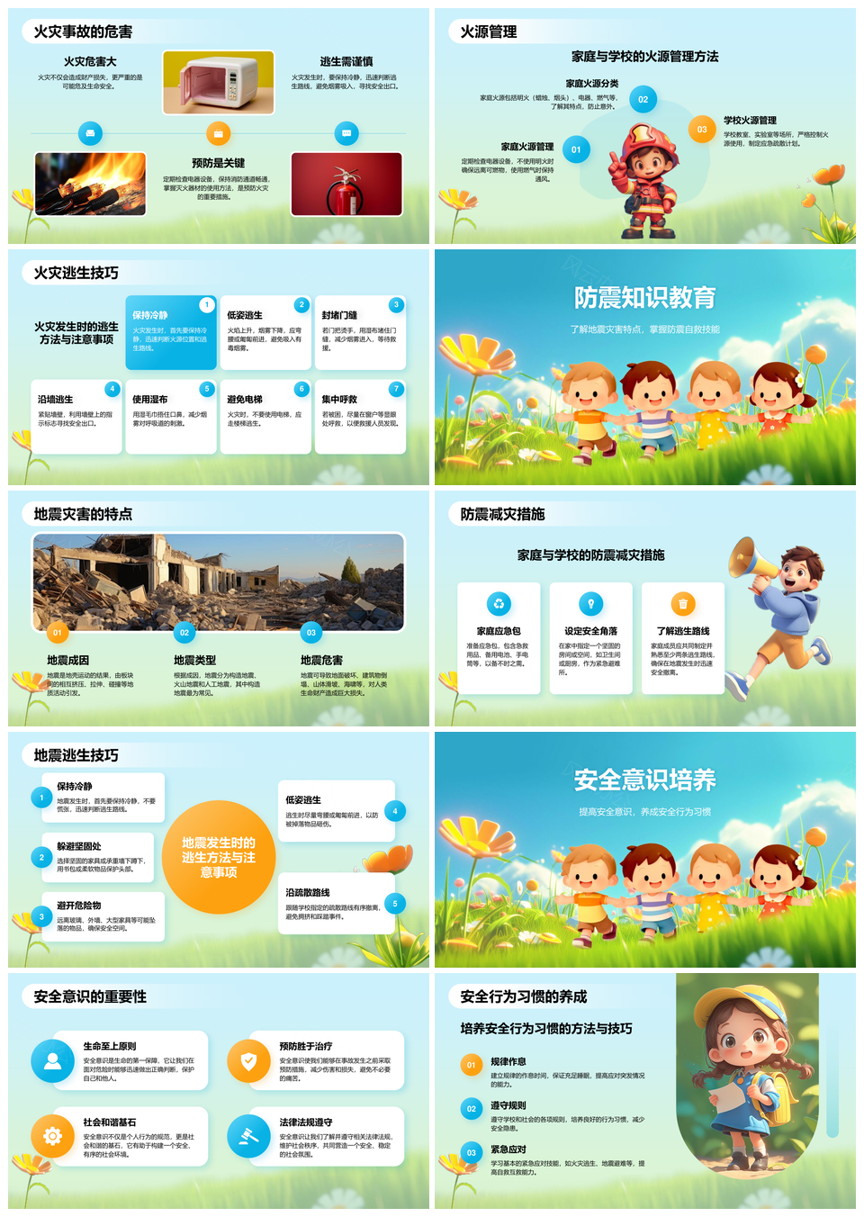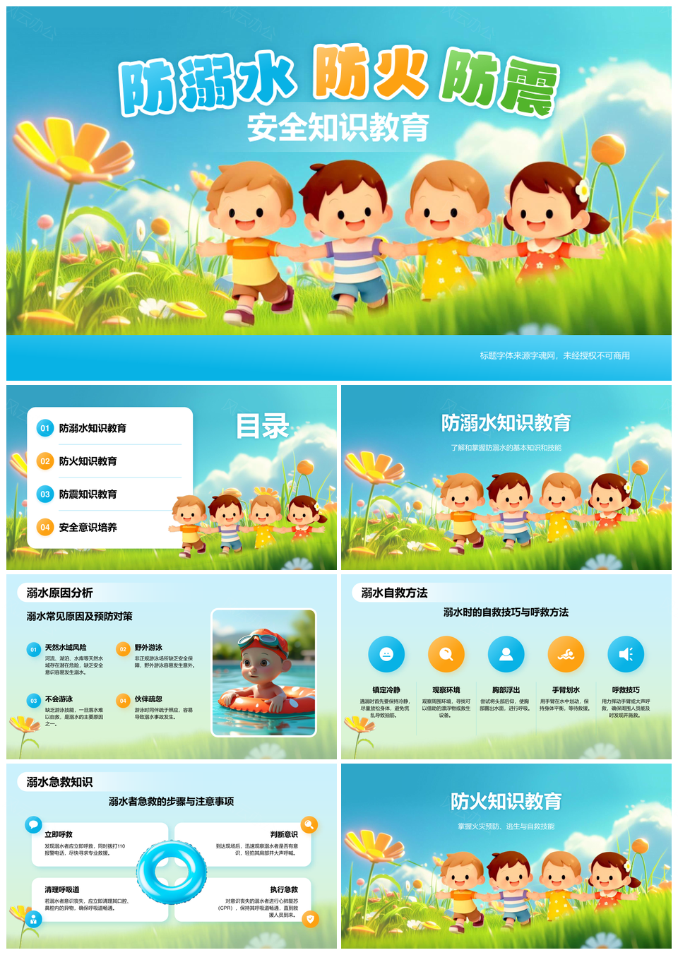 中小学生防溺水防火防震安全教育PPT模板推荐