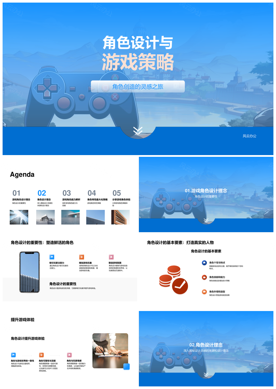 风云办公提供的游戏策略角色设计技能与创造灵感PPT模板,下载格式为pptx,一共23页,作品中文字及图均可以修改和编辑,图片更改请在作品中右键图片并更换,文字修改请直接点击文字进行修改。