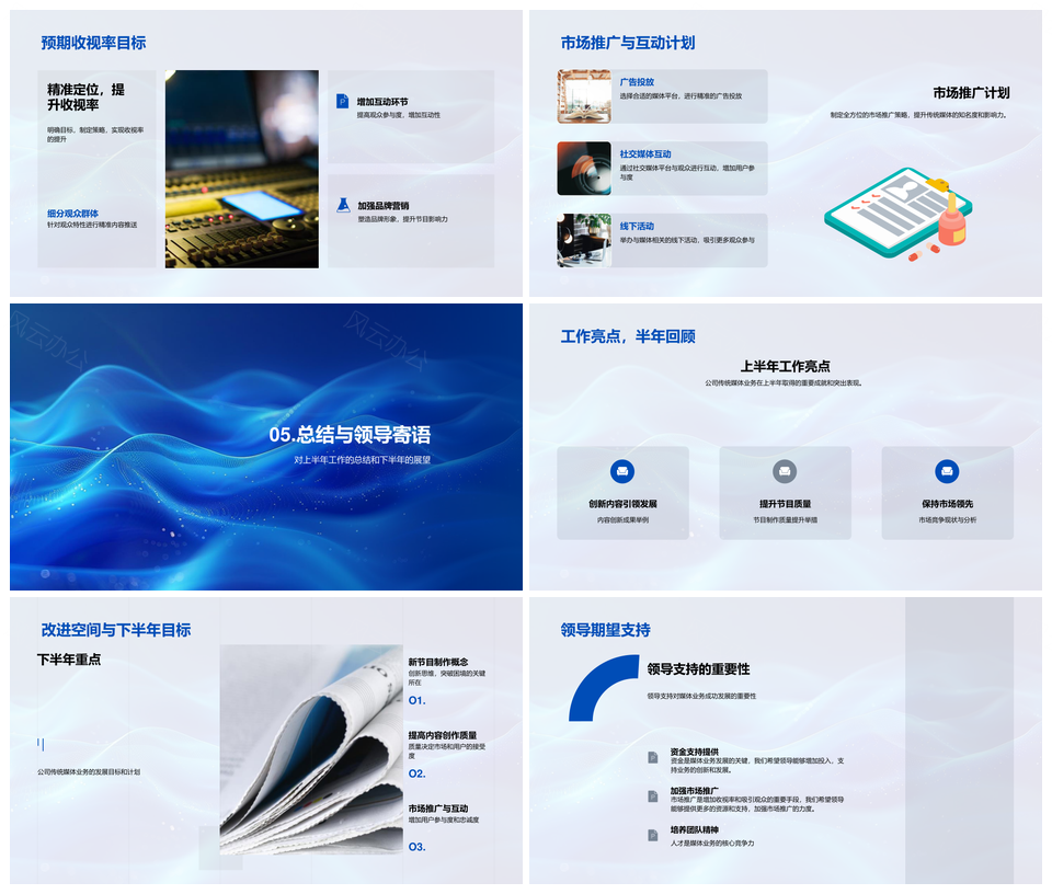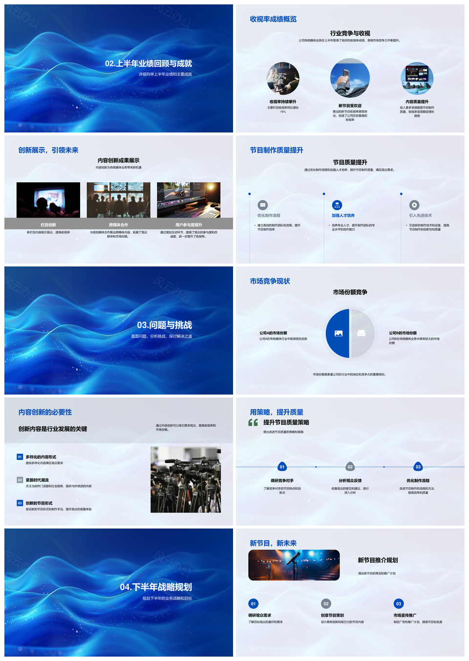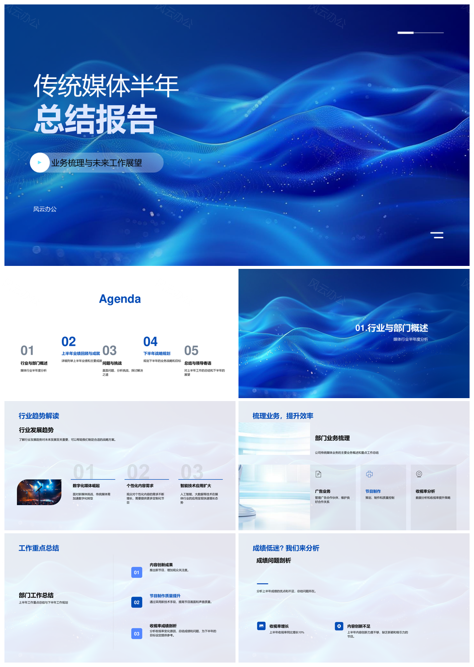传统媒体半年总结业务成果展望行业分析PPT模板推荐