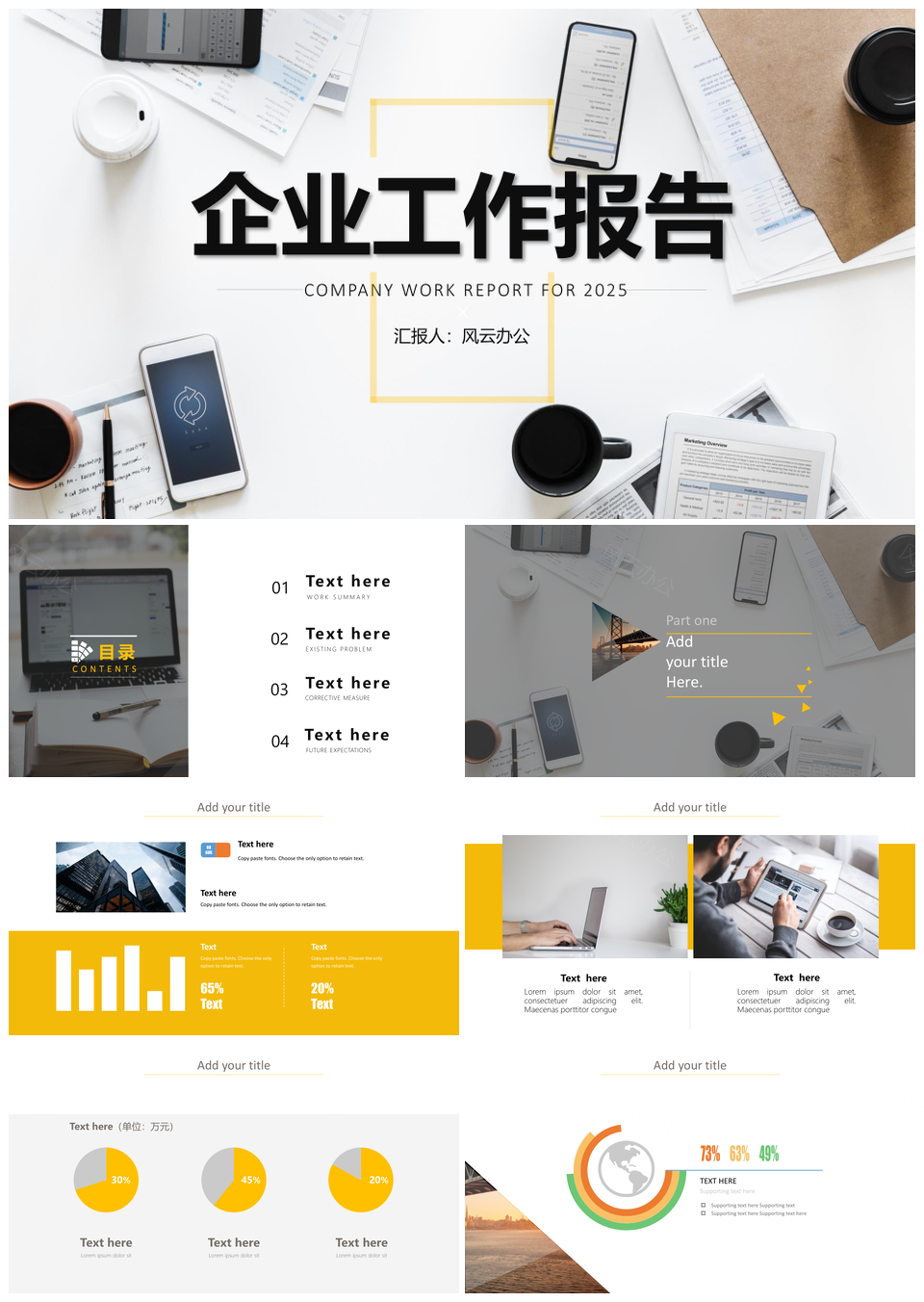 这是一张2025企业工作报告PPT模板,包含2025、企业、工作报告等主题内容,也可用作2025、企业、工作、报告 2025企业工作报告、企业工作报告、2025企业工作、2025工作报告、2025企业报告、企业工作、工作报告、2025企业、2025工作、2025报告、企业报告等PPT场景使用。 风云办公提供的2025企业工作报告PPT模板,下载格式为pptx,一共20页,作品中文字及图均可以修改和编辑,图片更改请在作品中右键图片并更换,文字修改请直接点击文字进行修改。