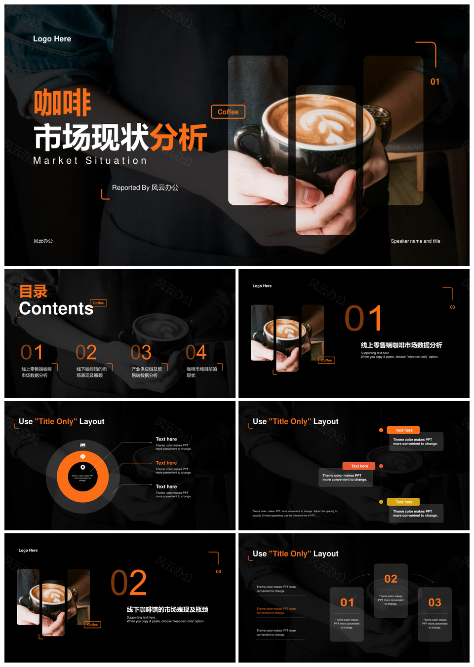 黑色商务咖啡市场供应线上零售数据分析PPT模板推荐