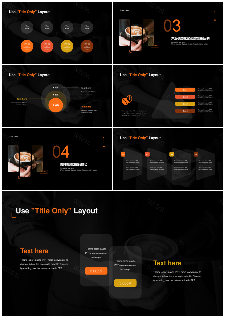 黑色商务咖啡市场供应线上零售数据分析PPT模板