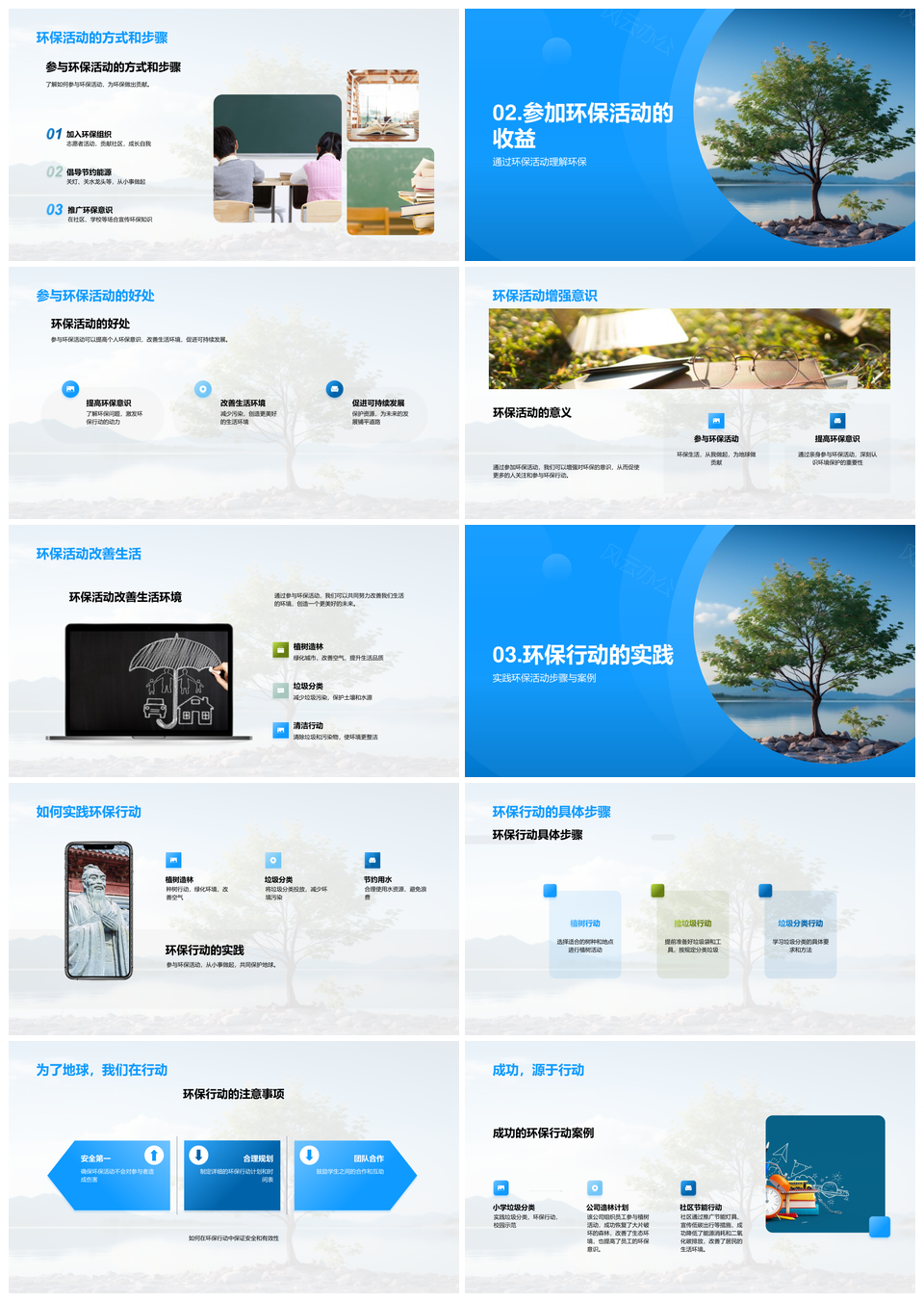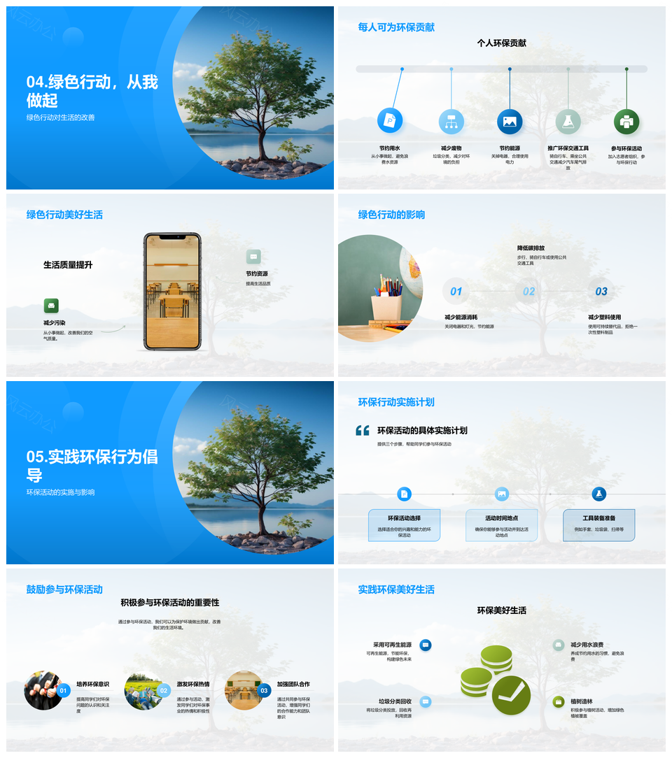 这是一张环保实践绿色行动植树回收共建美好生活PPT模板,包含环保、实践、绿色行动、植树、回收、共建、美好生活等主题内容,也可用作环保实践绿色行动、绿色行动植树回收、植树回收共建美好、回收共建美好生活、实践绿色行动、绿色行动植树、行动植树回收、植树回收共建、回收共建美好、共建美好生活、环保实践、绿色行动、植树回收、回收共建、共建美好等PPT场景使用。 风云办公提供的环保实践绿色行动植树回收共建美好生活PPT模板,下载格式为pptx,一共26页,作品中文字及图均可以修改和编辑,图片更改请在作品中右键图片并更换,文字修改请直接点击文字进行修改。