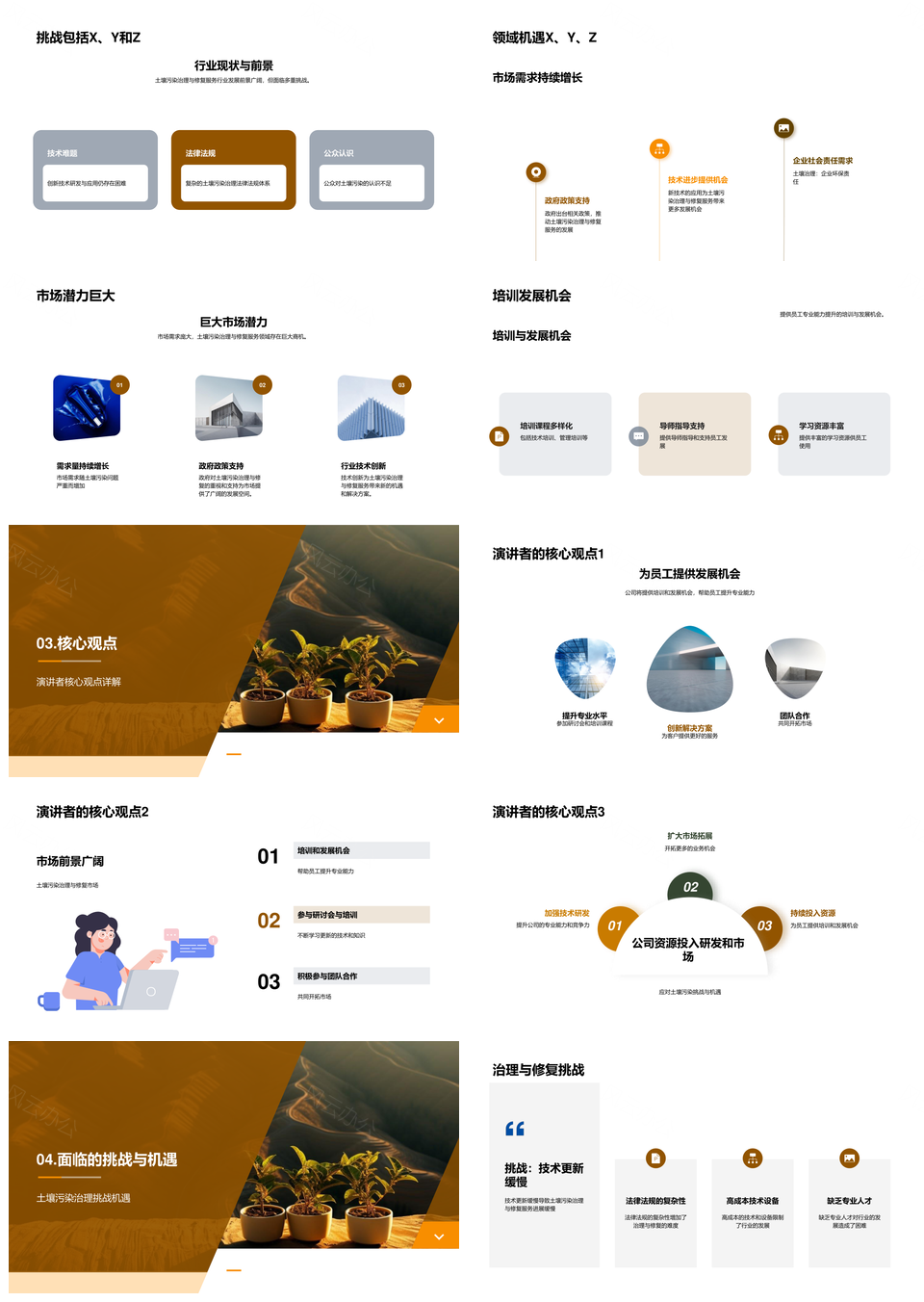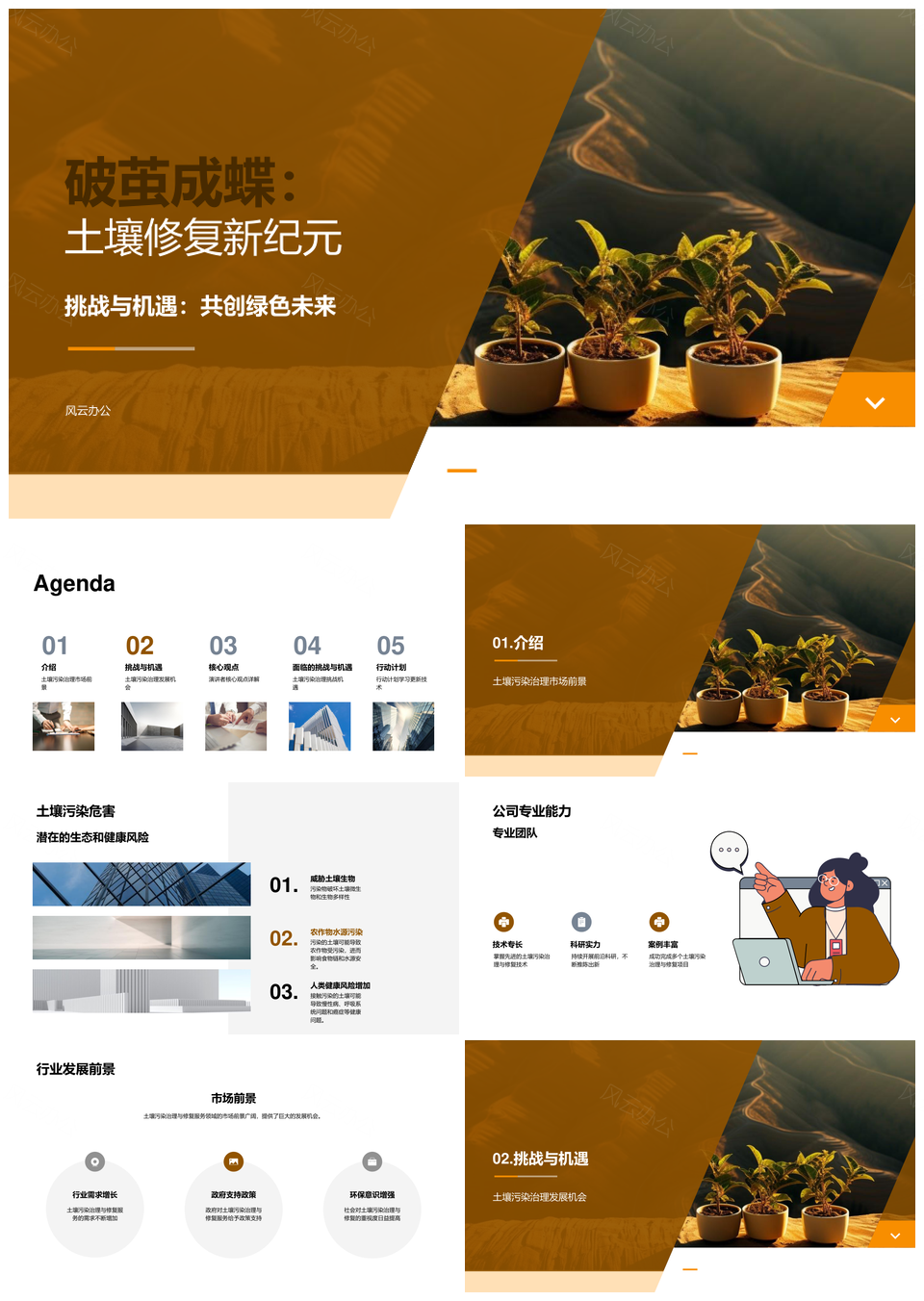 这是一张土壤污染治理修复挑战机遇助环境健康行业发展PPT模板,包含土壤污染、治理修复、挑战、机遇、环境健康行业、发展等主题内容,也可用作土壤污染治理修复挑战机遇、土壤污染治理修复环境健康、治理修复挑战机遇环境健康、环境健康行业发展挑战机遇、治理修复环境健康行业发展、土壤污染治理修复挑战、土壤污染治理修复机遇、治理修复挑战环境健康、修复挑战机遇环境健康、环境健康行业发展挑战、环境健康行业发展机遇、治理修复环境健康、修复环境健康行业、环境健康行业发展、土壤污染治理等PPT场景使用。 风云办公提供的土壤污染治理修复挑战机遇助环境健康行业发展PPT模板,下载格式为pptx,一共25页,作品中文字及图均可以修改和编辑,图片更改请在作品中右键图片并更换,文字修改请直接点击文字进行修改。