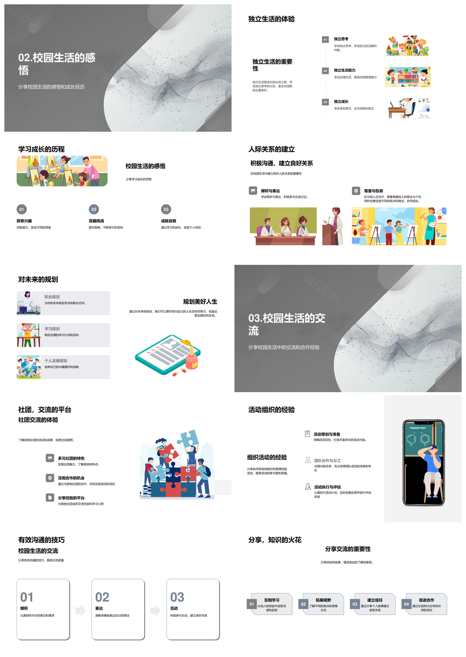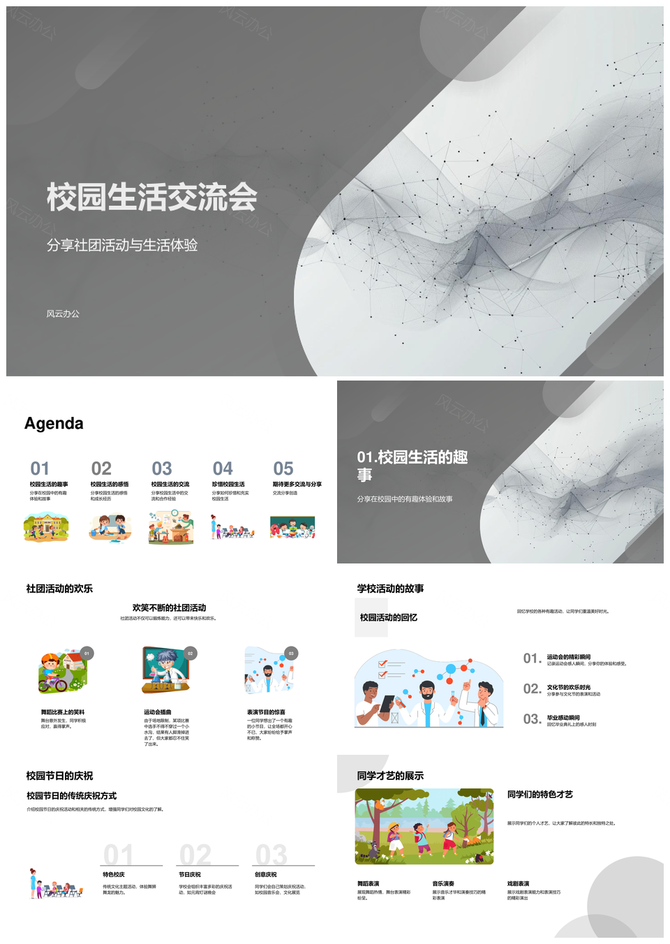 这是一张校园生活交流会社团活动教育成长人际未来PPT模板,包含校园生活、交流会、社团活动、教育、成长、人际、未来等主题内容,也可用作校园生活交流会社团活动教育、校园生活交流会教育成长、社团活动教育成长人际、教育成长人际未来、交流会社团活动教育、社团活动教育成长、教育人际未来、校园生活教育成长、交流会教育成长、社团活动教育未来、成长人际未来、教育成长未来、校园生活交流会、社团活动教育、教育成长未来等PPT场景使用。 风云办公提供的校园生活交流会社团活动教育成长人际未来PPT模板,下载格式为pptx,一共28页,作品中文字及图均可以修改和编辑,图片更改请在作品中右键图片并更换,文字修改请直接点击文字进行修改。