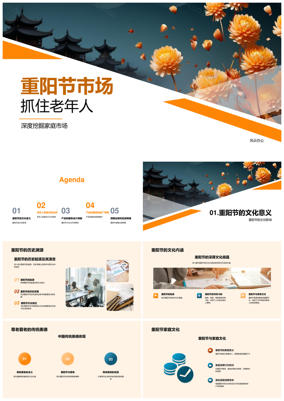 风云办公提供的重阳节老年家庭市场需求消费趋势PPT模板,下载格式为pptx,一共28页,作品中文字及图均可以修改和编辑,图片更改请在作品中右键图片并更换,文字修改请直接点击文字进行修改。