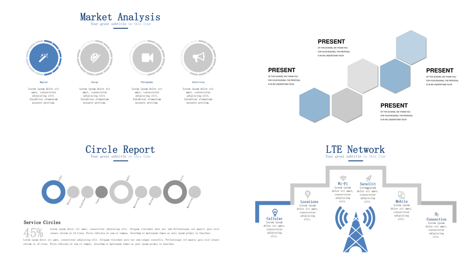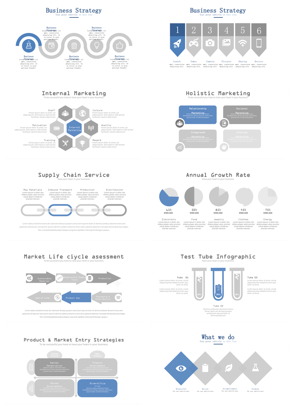 风云办公提供的灰蓝色商务数据并列关系数据关系PPT图表合集,下载格式为pptx,一共31页,作品中文字及图均可以修改和编辑,图片更改请在作品中右键图片并更换,文字修改请直接点击文字进行修改。