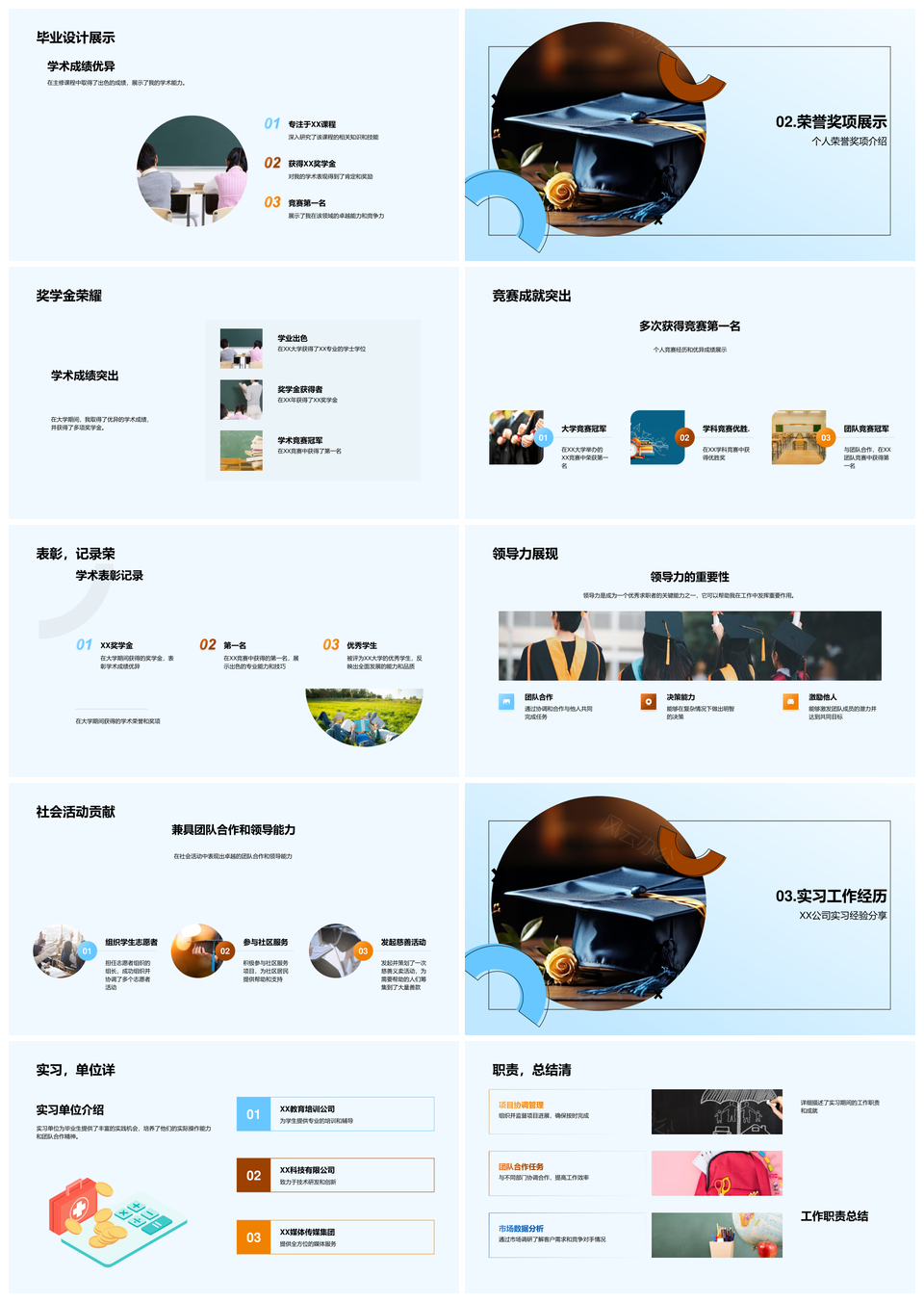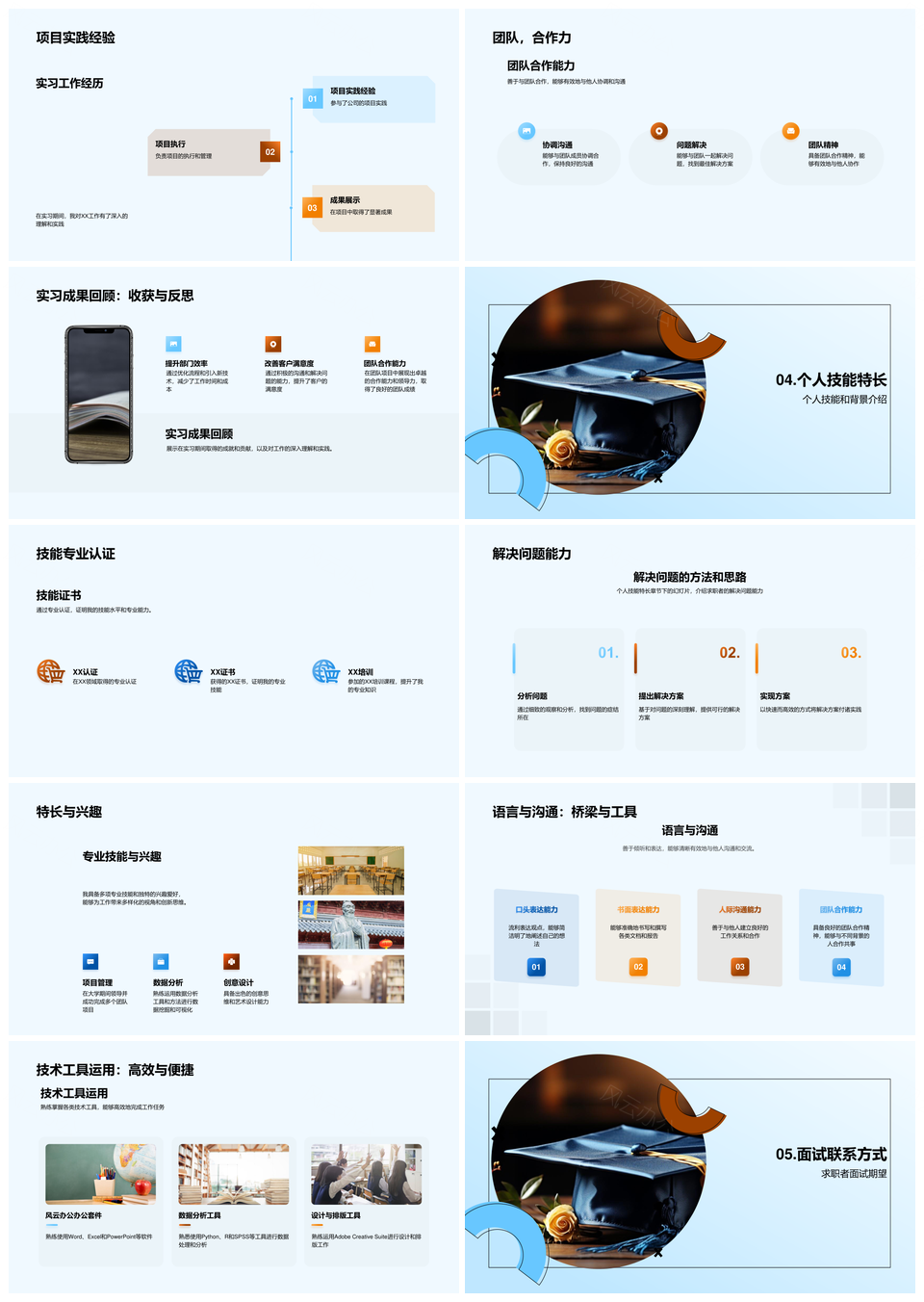 这是一张优秀毕业生迎挑战求职展学士主修获奖实习PPT模板,包含优秀毕业生、挑战、求职、学士、主修、获奖、实习等主题内容,也可用作优秀毕业生迎挑战、毕业生迎挑战求职、迎挑战求职展、求职展学士主修、学士主修获奖实习、毕业生迎挑战、迎挑战求职、挑战求职展、主修获奖实习、优秀毕业生、迎挑战、挑战求职、求职展、学士主修、获奖实习等PPT场景使用。 风云办公提供的优秀毕业生迎挑战求职展学士主修获奖实习PPT模板,下载格式为pptx,一共33页,作品中文字及图均可以修改和编辑,图片更改请在作品中右键图片并更换,文字修改请直接点击文字进行修改。