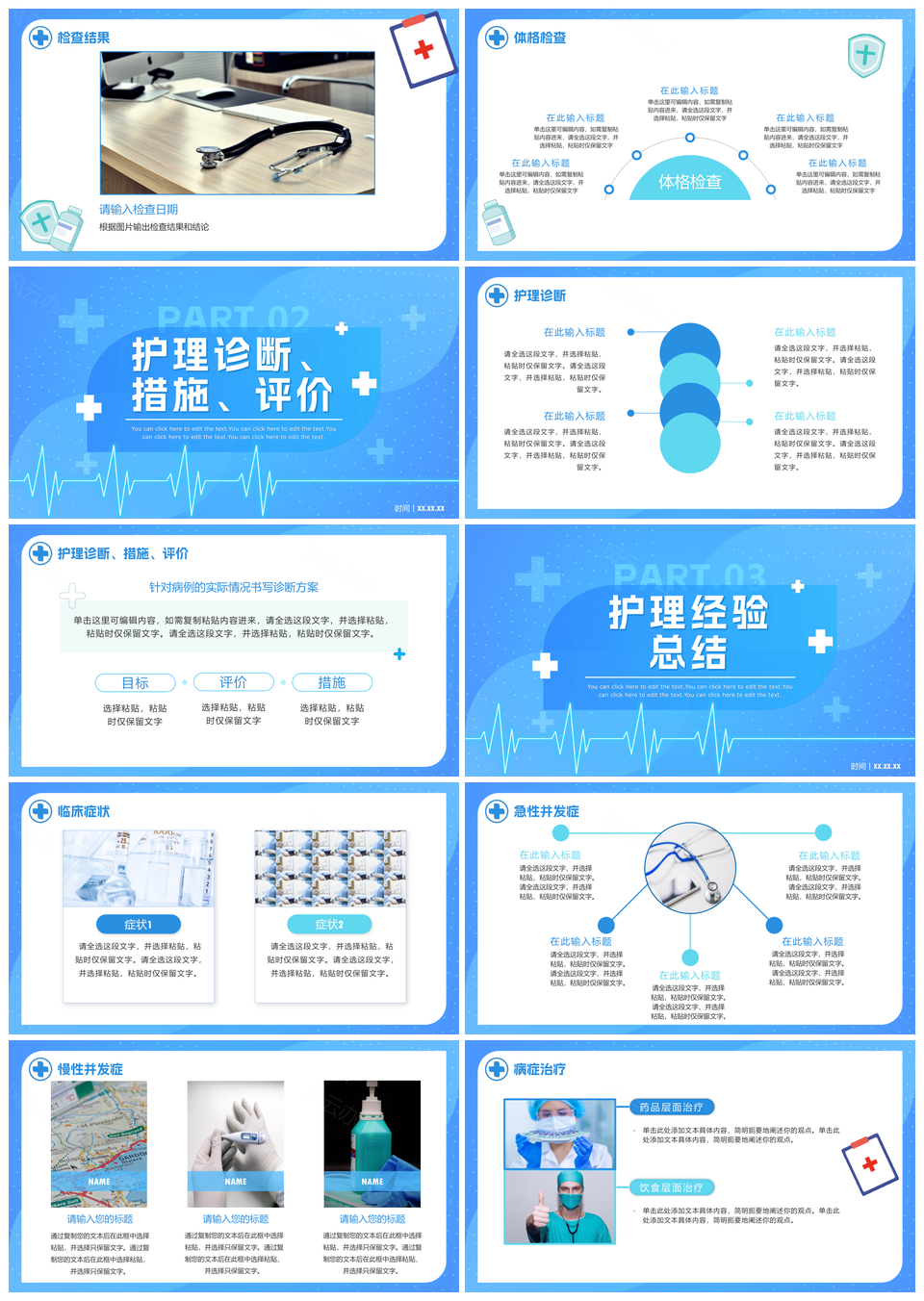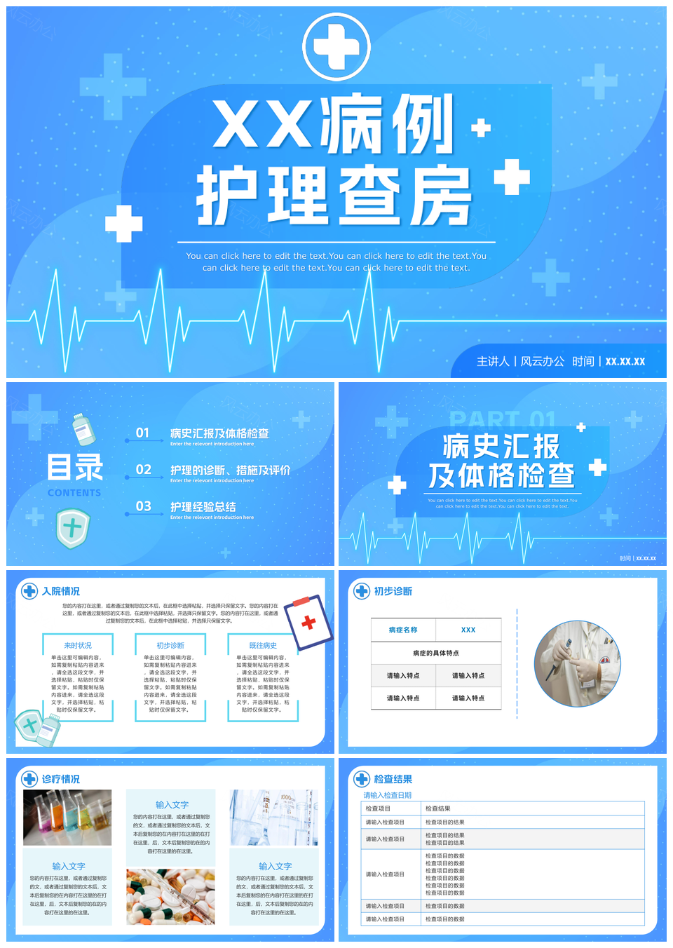 风云办公提供的科技蓝医护病房查房记录PPT模板,下载格式为pptx,一共18页,作品中文字及图均可以修改和编辑,图片更改请在作品中右键图片并更换,文字修改请直接点击文字进行修改。