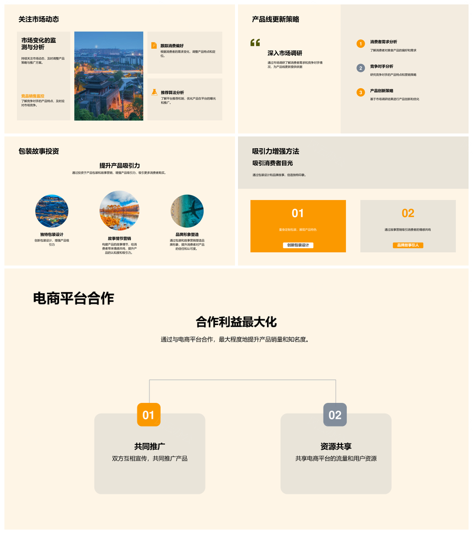 风云办公提供的电商美食爆款趋势与消费行为优化分析PPT模板,下载格式为pptx,一共33页,作品中文字及图均可以修改和编辑,图片更改请在作品中右键图片并更换,文字修改请直接点击文字进行修改。