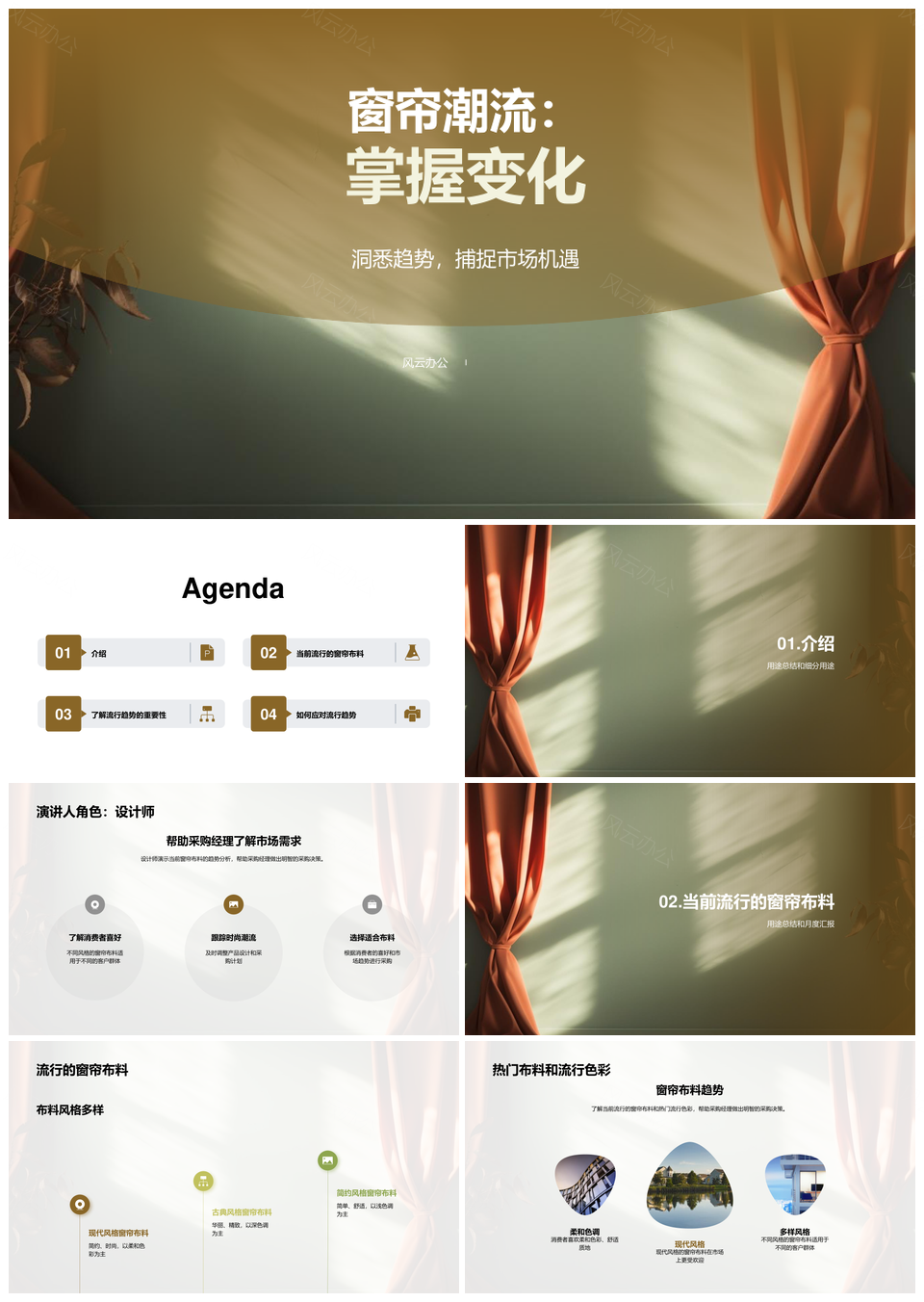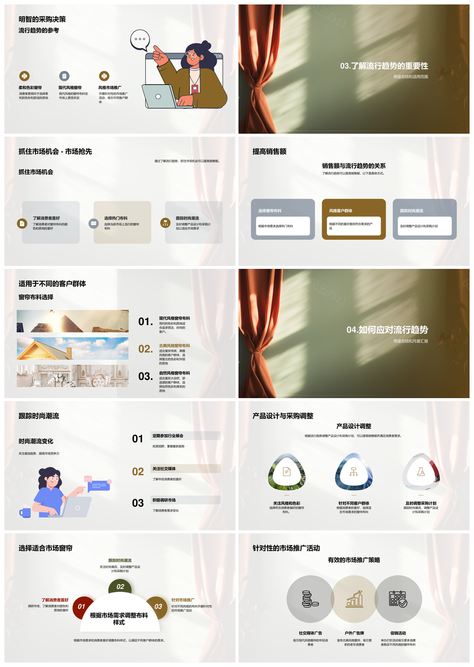 窗帘布料趋势分析设计师采购经理季节潮流消费者PPT模板推荐