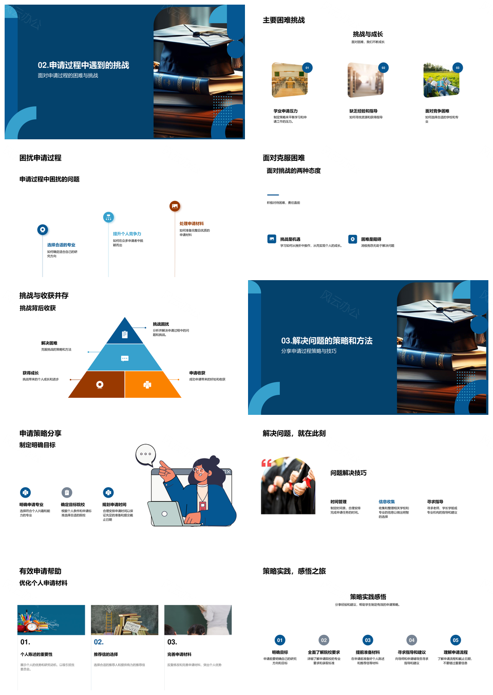 风云办公提供的研究生申请策略挑战成长经验关键决策PPT模板,下载格式为pptx,一共28页,作品中文字及图均可以修改和编辑,图片更改请在作品中右键图片并更换,文字修改请直接点击文字进行修改。