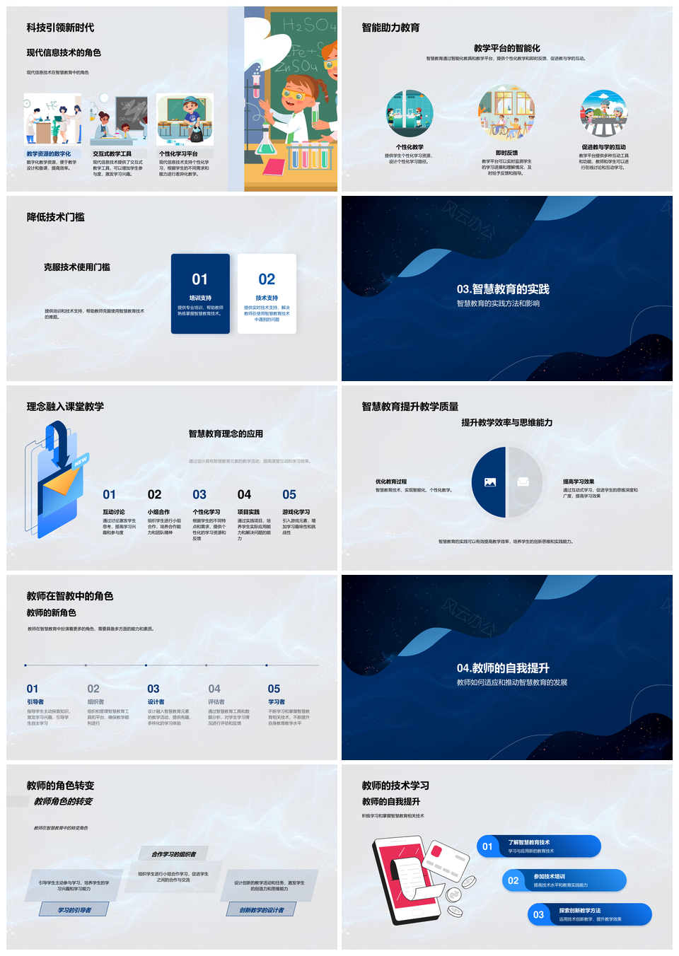 智慧教育教师角色转型技术应用实施策略PPT模板推荐
