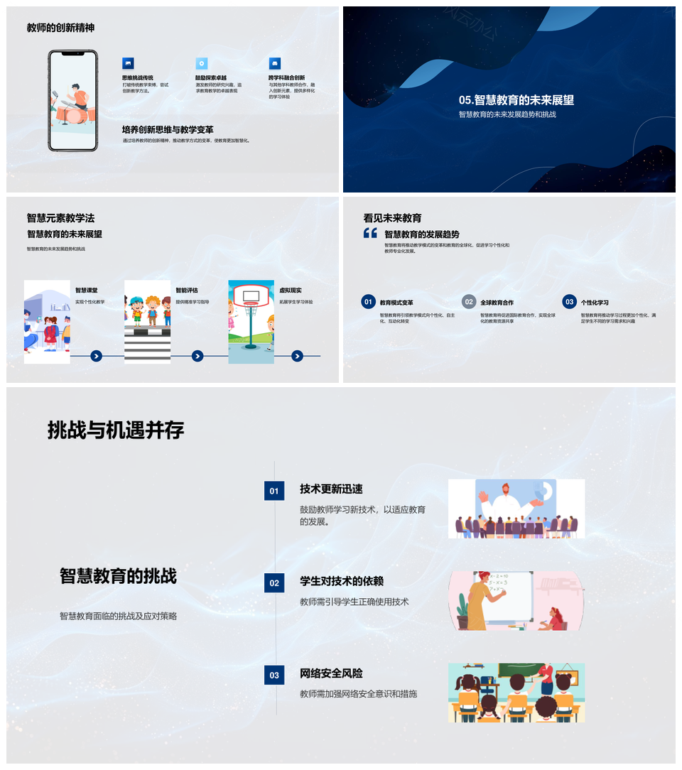 这是一张智慧教育教师角色转型技术应用实施策略PPT模板,包含智慧教育、教师、角色、转型、技术、应用、实施、策略等主题内容,也可用作智慧教育教师角色转型技术应用实施策略、智慧教育教师角色转型技术应用、教师角色转型技术应用实施策略、智慧教育教师角色转型、教师角色转型技术应用、角色转型技术应用实施策略、智慧教育教师技术应用、智慧教育教师实施策略、智慧教育角色转型技术应用、教师角色转型实施策略、智慧教育技术应用实施策略、教师技术应用实施策略、智慧教育技术应用、智慧教育实施策略、教师技术应用等PPT场景使用。 风云办公提供的智慧教育教师角色转型技术应用实施策略PPT模板,下载格式为pptx,一共23页,作品中文字及图均可以修改和编辑,图片更改请在作品中右键图片并更换,文字修改请直接点击文字进行修改。