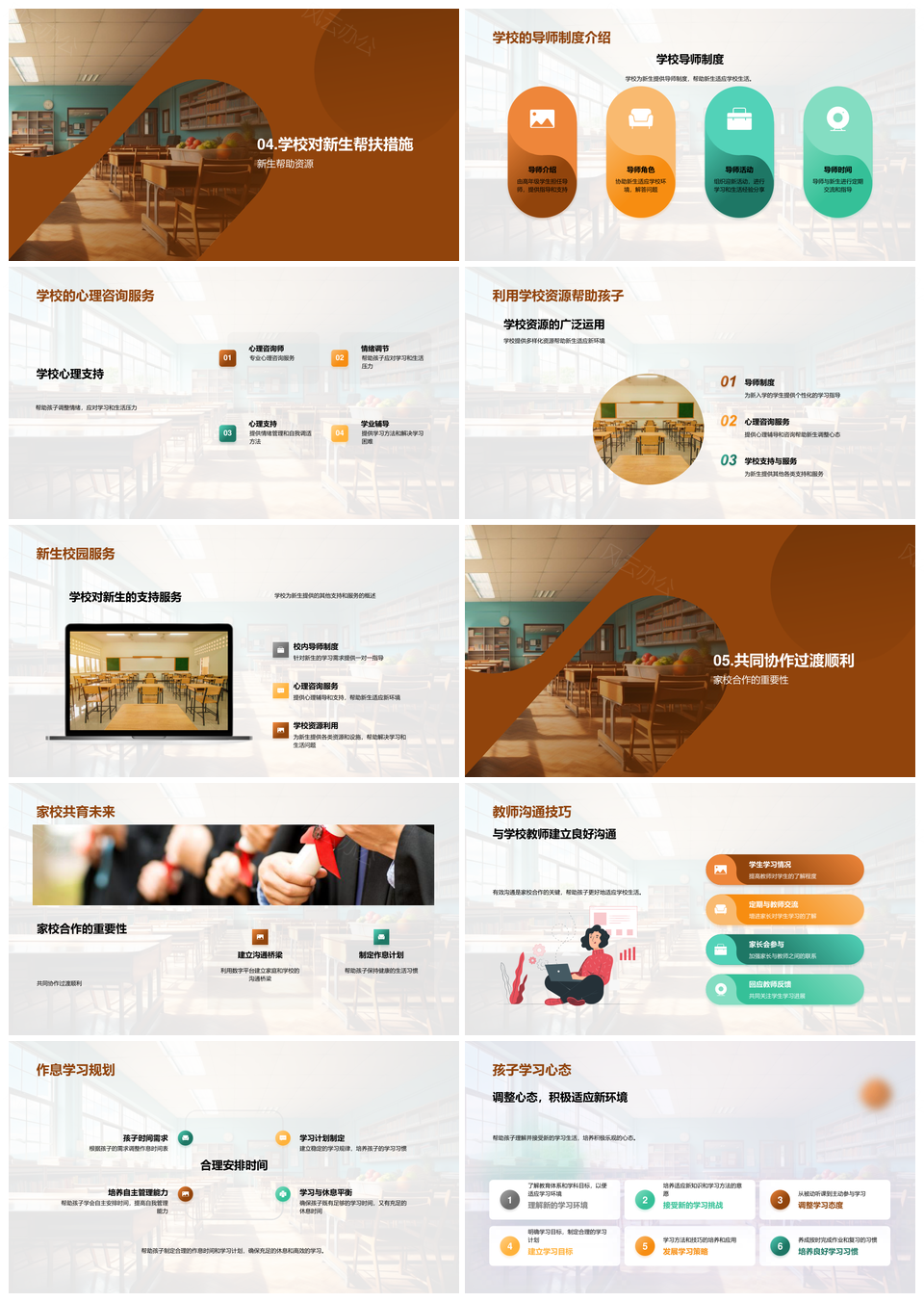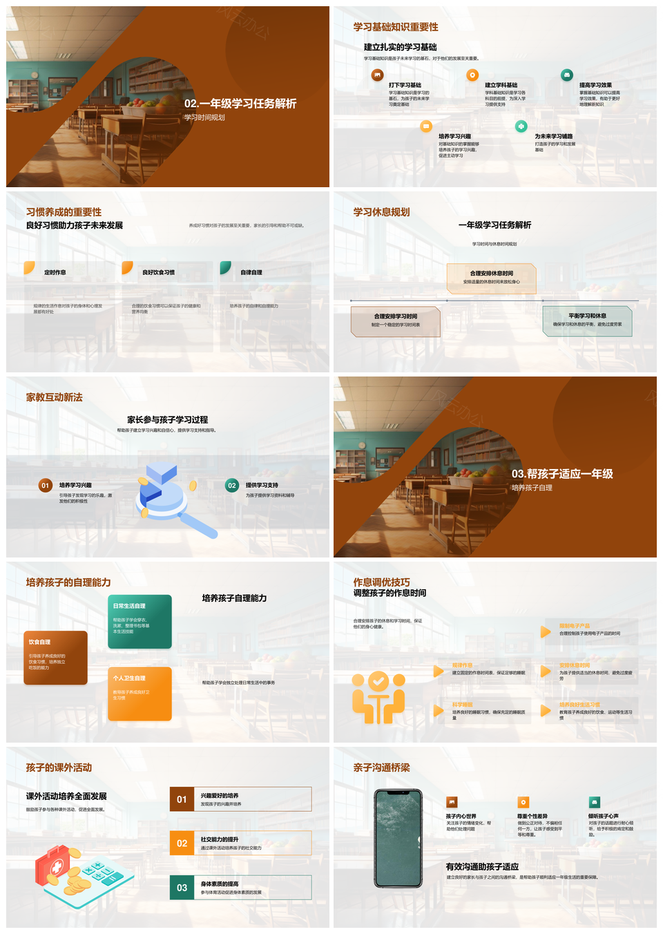 风云办公提供的一年级新生课程习惯家校共育引导手册PPT模板,下载格式为pptx,一共28页,作品中文字及图均可以修改和编辑,图片更改请在作品中右键图片并更换,文字修改请直接点击文字进行修改。