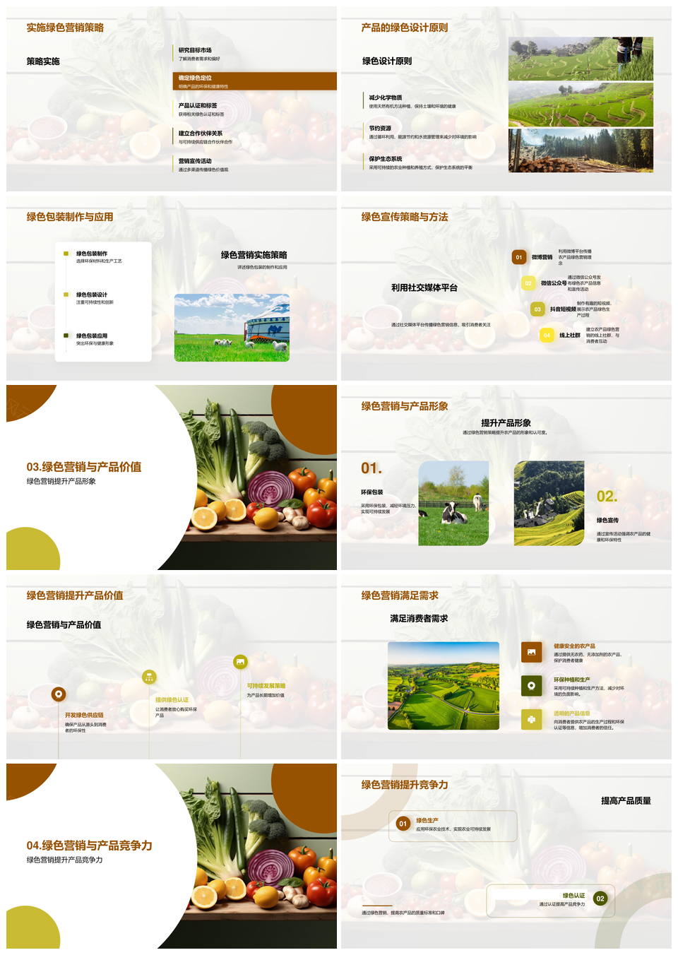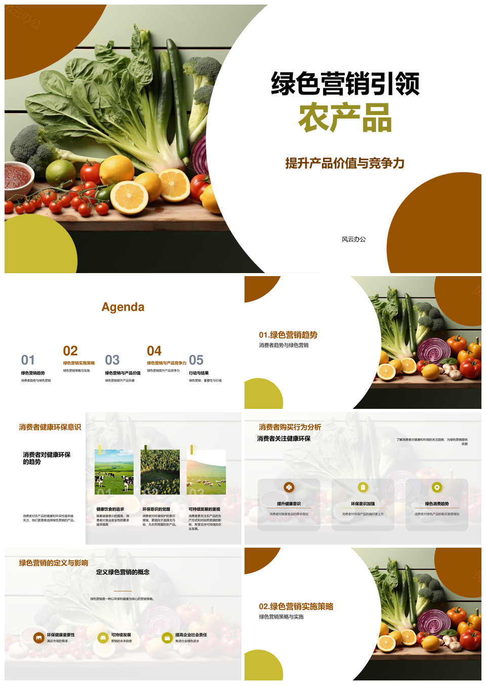 风云办公提供的绿色营销提升农产品健康价值竞争力PPT模板,下载格式为pptx,一共24页,作品中文字及图均可以修改和编辑,图片更改请在作品中右键图片并更换,文字修改请直接点击文字进行修改。