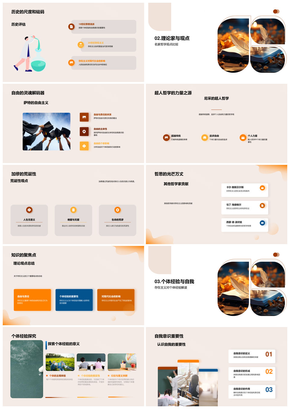 这是一张存在主义萨特尼采加缪超人哲学社会影响解析PPT模板,包含存在主义、萨特、尼采、加缪、超人、哲学、社会影响、解析等主题内容,也可用作存在主义萨特尼采加缪超人哲学、萨特尼采加缪超人哲学社会影响、尼采加缪超人哲学社会影响解析、存在主义萨特超人哲学社会影响、萨特尼采超人哲学社会影响解析、存在主义尼采加缪超人哲学、萨特加缪超人哲学社会影响解析、存在主义超人哲学社会影响解析、萨特尼采加缪解析、存在主义加缪超人哲学解析、尼采超人哲学社会影响解析、萨特超人哲学社会影响、存在主义社会影响解析、加缪超人哲学社会、尼采社会影响解析等PPT场景使用。 风云办公提供的存在主义萨特尼采加缪超人哲学社会影响解析PPT模板,下载格式为pptx,一共33页,作品中文字及图均可以修改和编辑,图片更改请在作品中右键图片并更换,文字修改请直接点击文字进行修改。