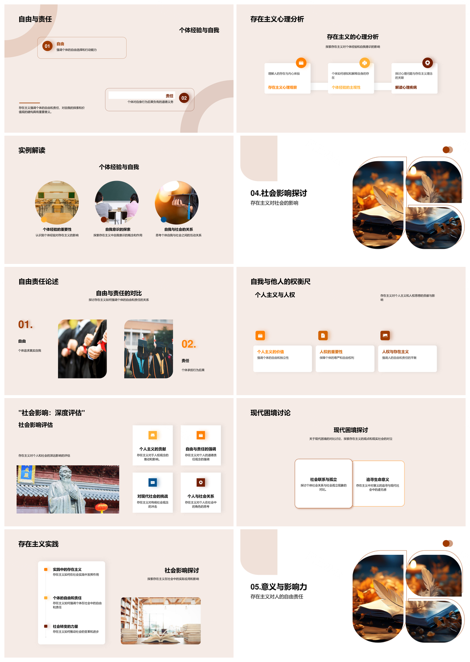 存在主义理论发展社会影响与自由意识应用PPT模板