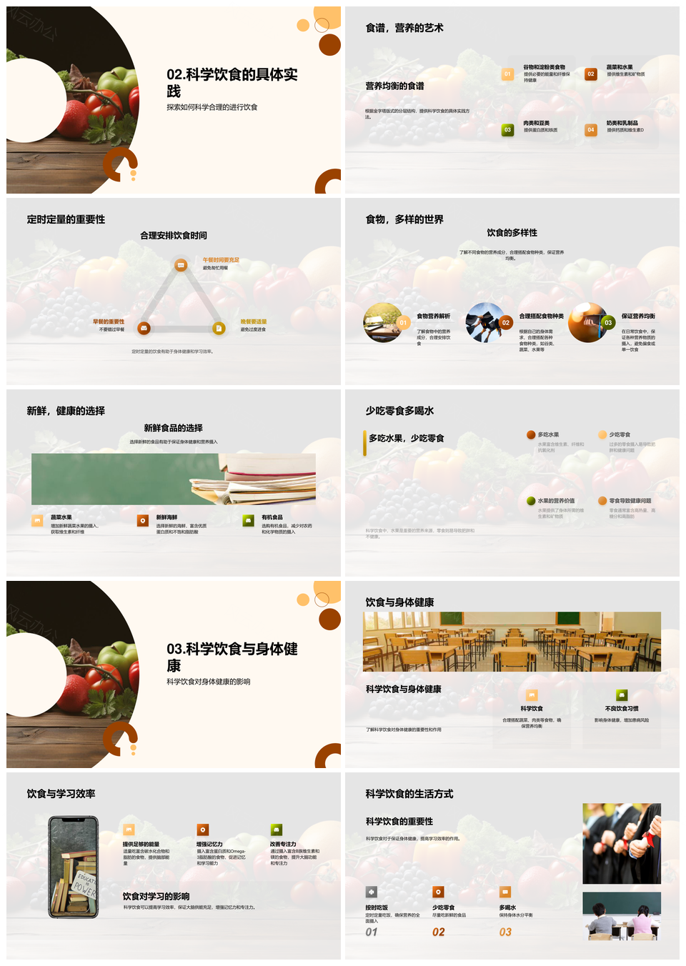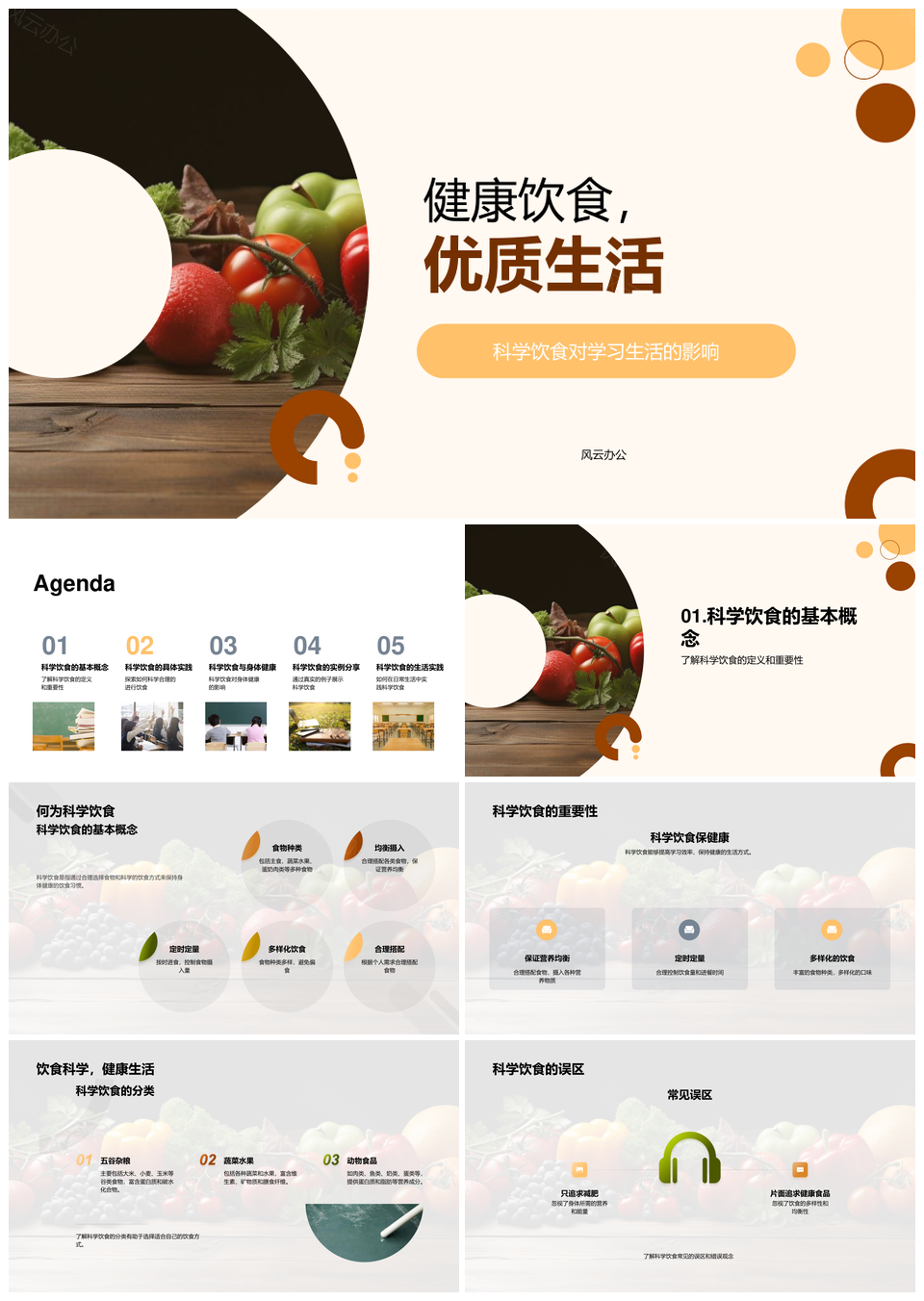 风云办公提供的科学饮食营养均衡助力健康高效生活PPT模板,下载格式为pptx,一共29页,作品中文字及图均可以修改和编辑,图片更改请在作品中右键图片并更换,文字修改请直接点击文字进行修改。