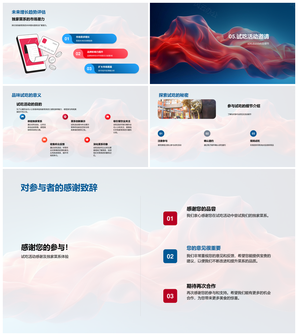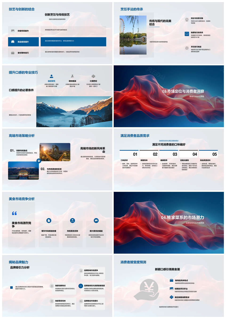 这是一张独家菜系传统创新高端市场定位品牌试吃消费分析PPT模板,包含独家菜系、传统、创新、高端市场、定位、品牌、试吃、消费分析等主题内容,也可用作独家菜系传统创新、高端市场定位品牌、市场定位品牌试吃、定位品牌试吃消费、品牌试吃消费分析、高端市场定位、市场定位品牌、定位品牌试吃、品牌试吃消费、试吃消费分析、高端市场定位品牌试吃、独家菜系传统、传统创新高端、高端市场定位品牌试吃、创新高端市场定位等PPT场景使用。 风云办公提供的独家菜系传统创新高端市场定位品牌试吃消费分析PPT模板,下载格式为pptx,一共23页,作品中文字及图均可以修改和编辑,图片更改请在作品中右键图片并更换,文字修改请直接点击文字进行修改。