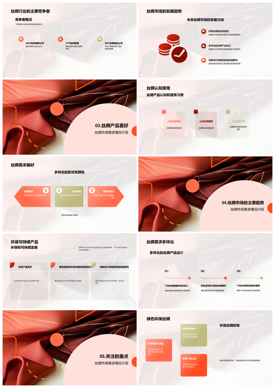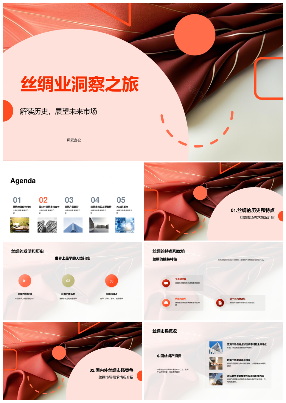 风云办公提供的丝绸产业历史特点与全球市场趋势PPT模板,下载格式为pptx,一共20页,作品中文字及图均可以修改和编辑,图片更改请在作品中右键图片并更换,文字修改请直接点击文字进行修改。