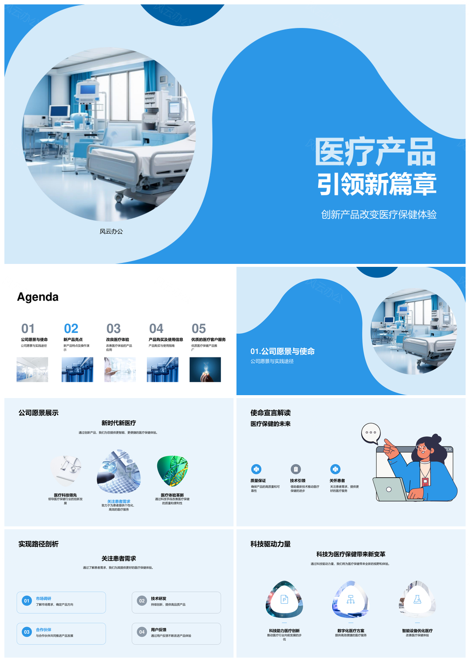 风云办公提供的生物医疗创新产品亮相创业路演PPT模板,下载格式为pptx,一共33页,作品中文字及图均可以修改和编辑,图片更改请在作品中右键图片并更换,文字修改请直接点击文字进行修改。